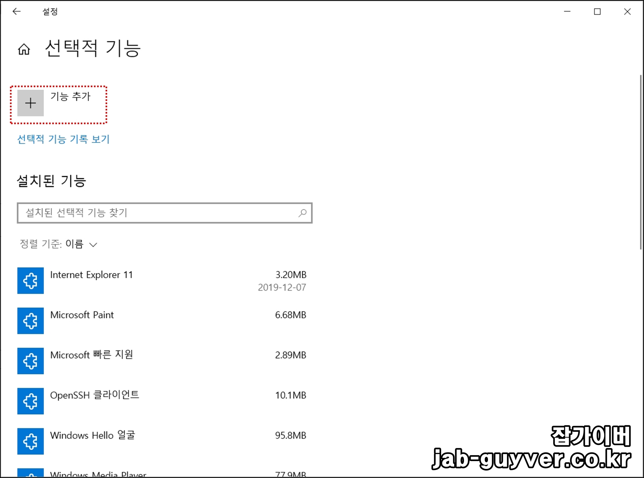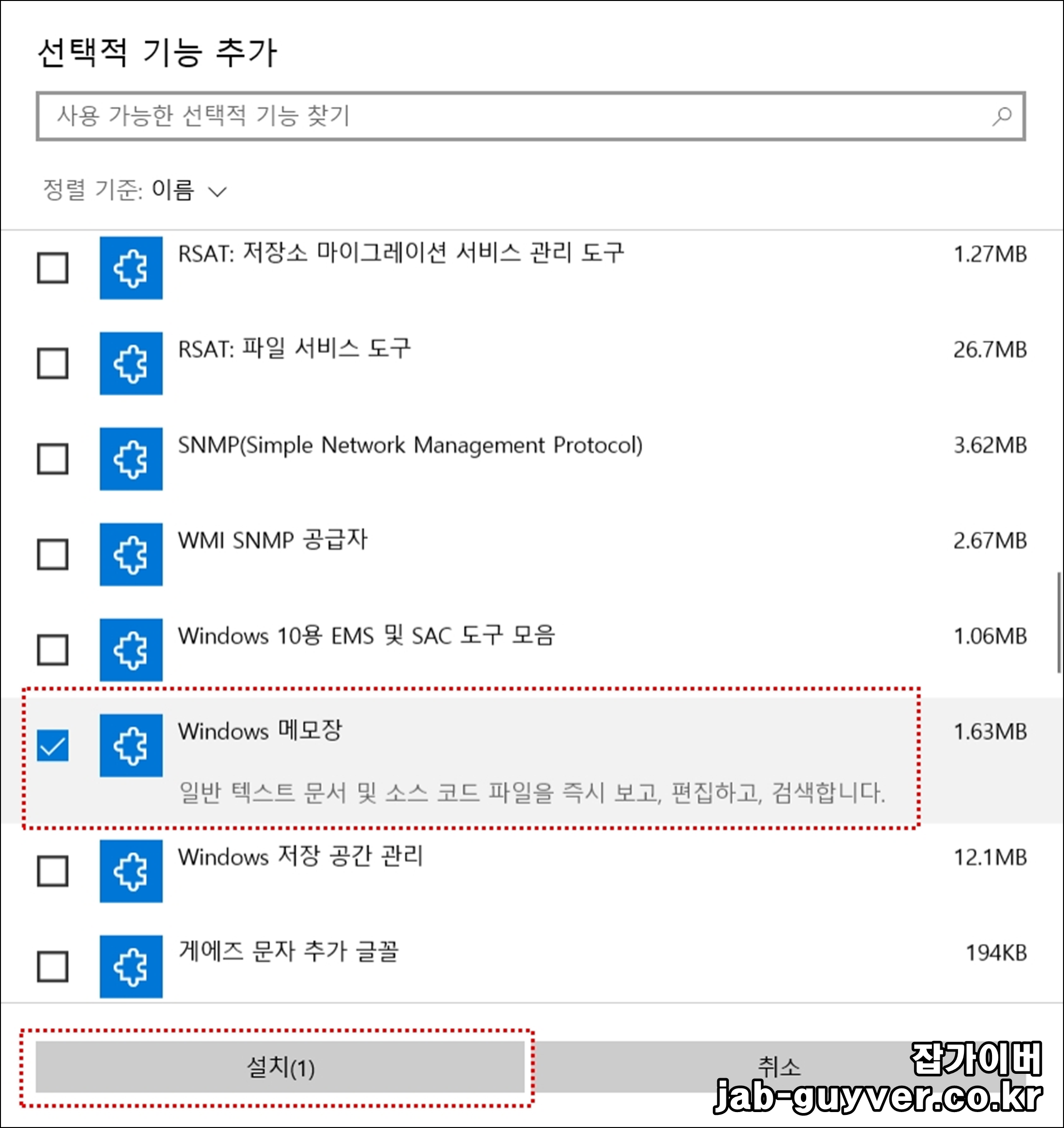 기능추가를 선택해 Windows 메모장을 설치합니다.