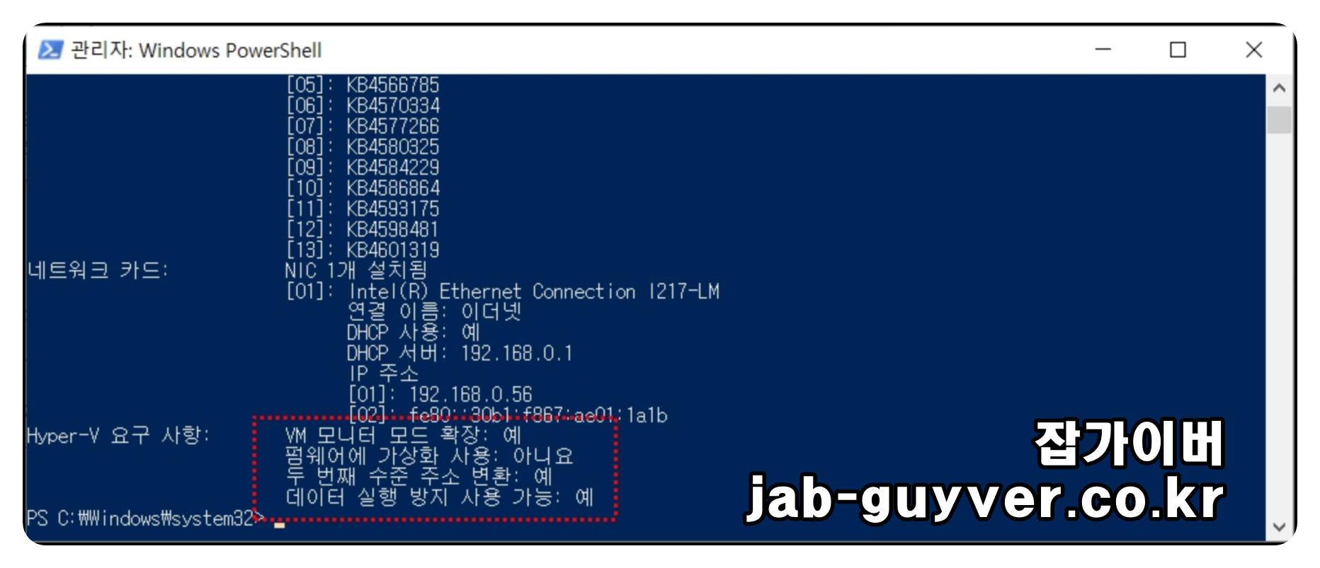 "Hyper-V 요구 사항"섹션에서 "Virtualization Enabled In Firmware"가 Yes 이면 Windows Sandbox를 사용할 수 있습니다.