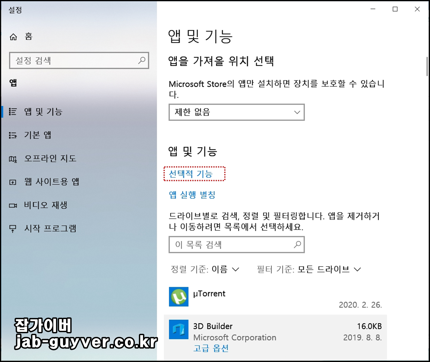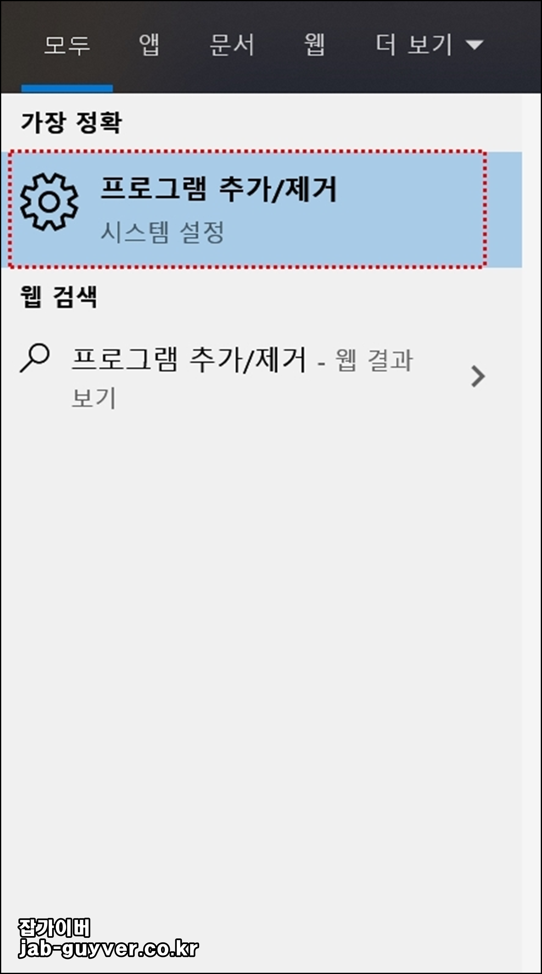 윈도우10 좌츠가다 검색부분에 프로그램 추가/제거를 입력 후 실행합니다.