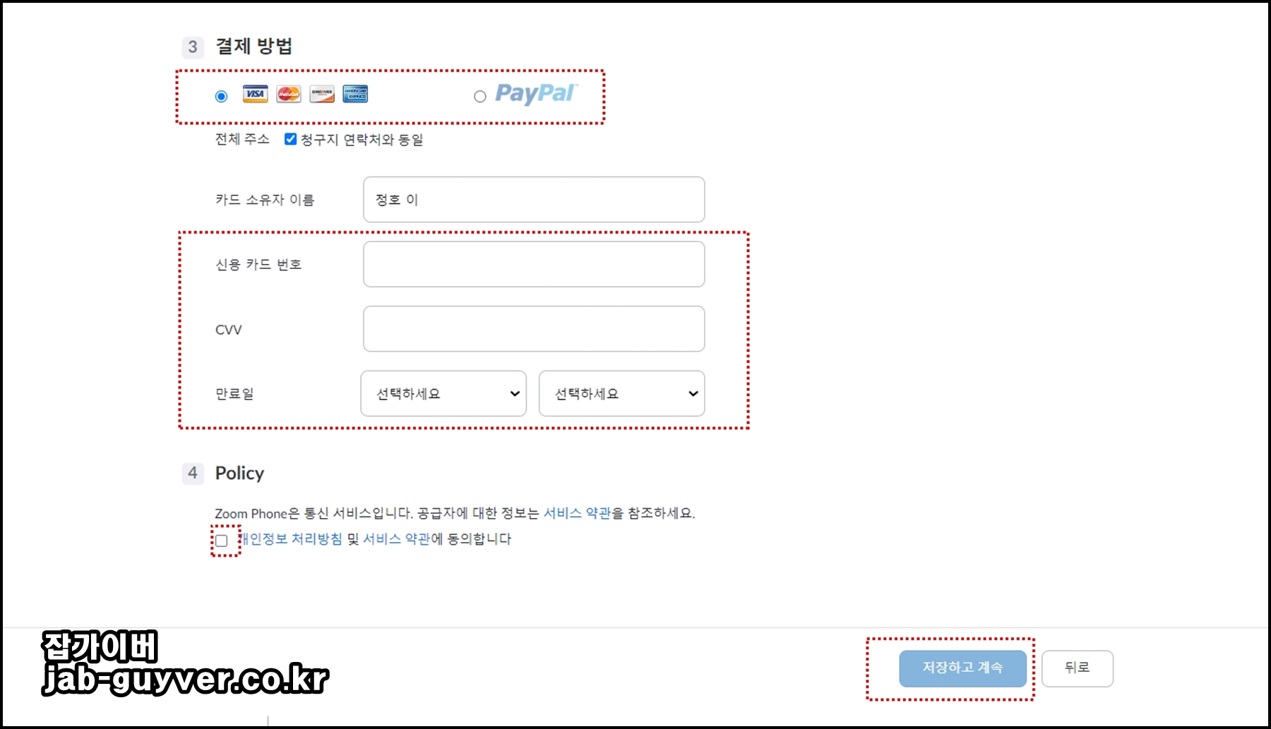 이후 줌 유료결제시에 결제 가능한 카드는 총 4가지입니다.