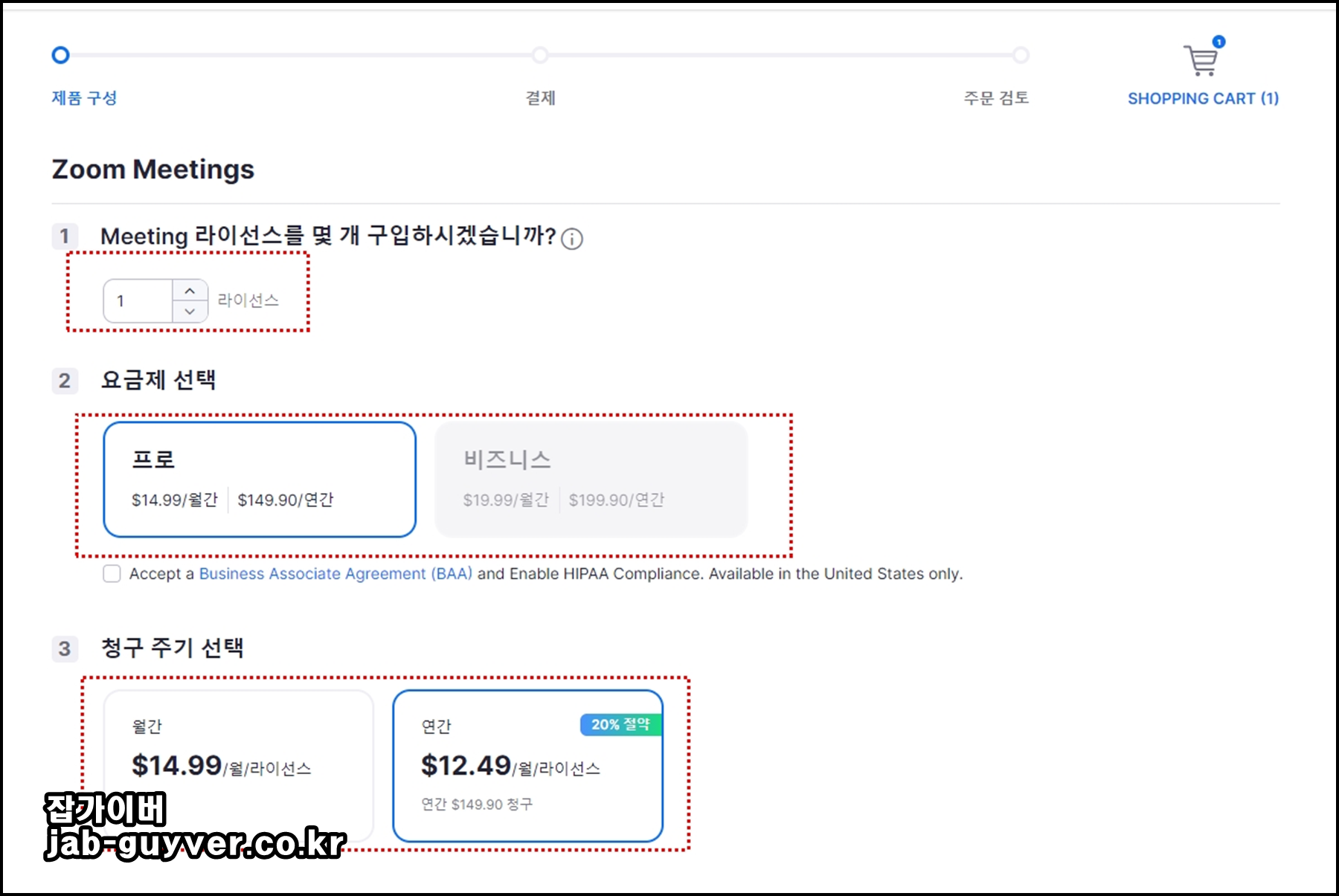 요금제를 선택할때 연간청구할것인지 월간청구할것인지 그리고 미국달러로 결제할것인지 화폐단위를 정할 수 있습니다.