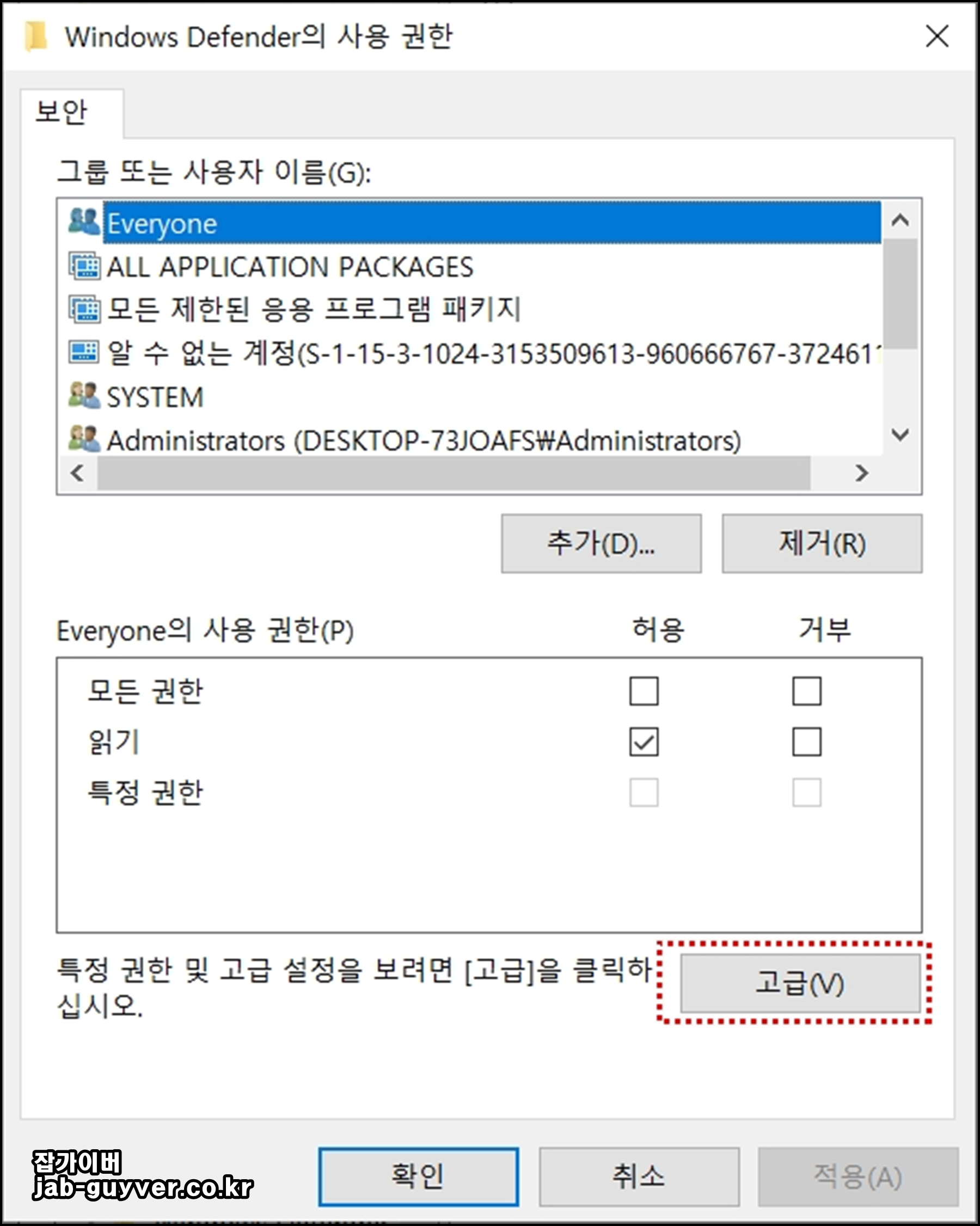 위 경로로 이동 후 Windows Denfender의 사용권한으로 들어갑니다.