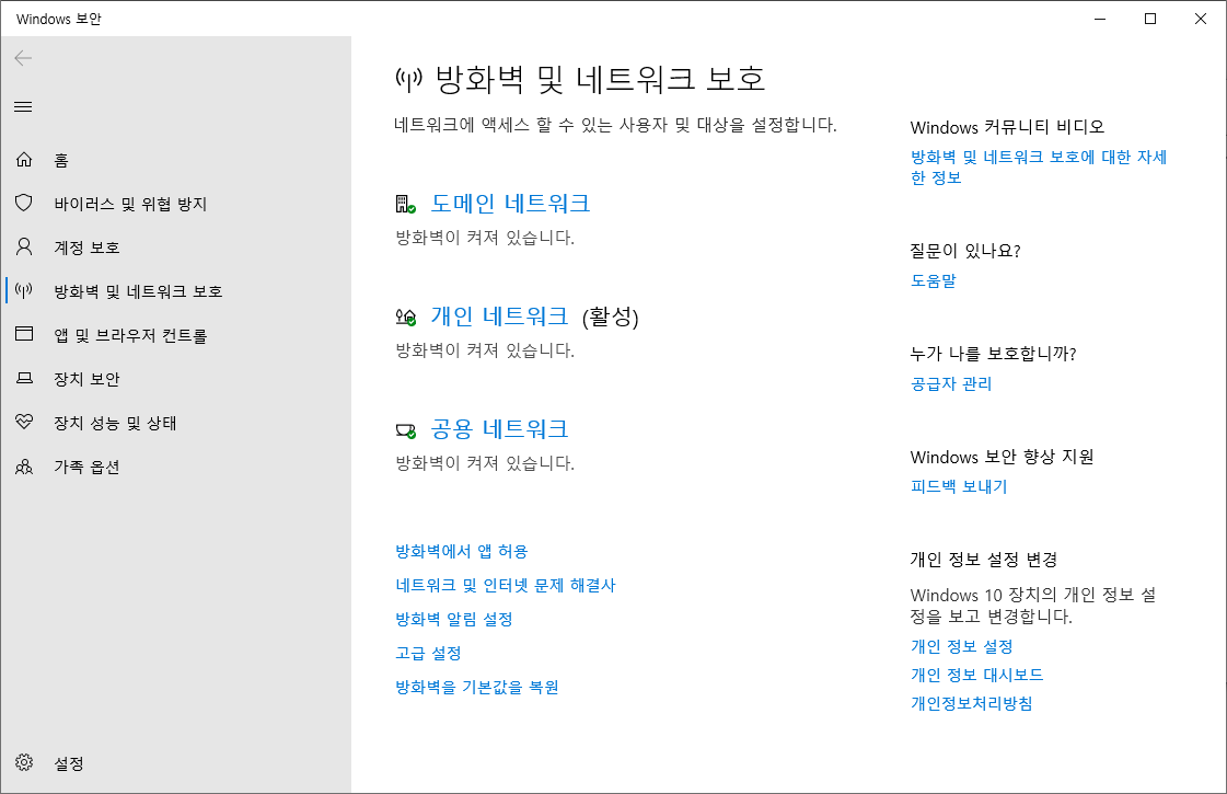 윈도우10 보안설정 방화벽 특정 프로그램 해제방법