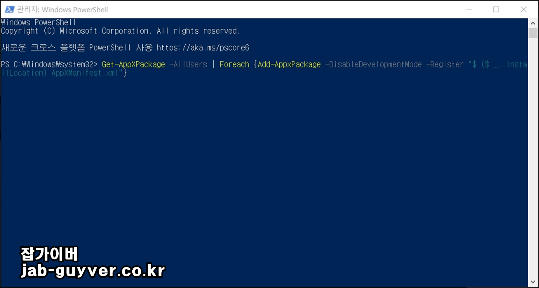 Windows PowerShell에서 엣지 앱 재등록·재설치