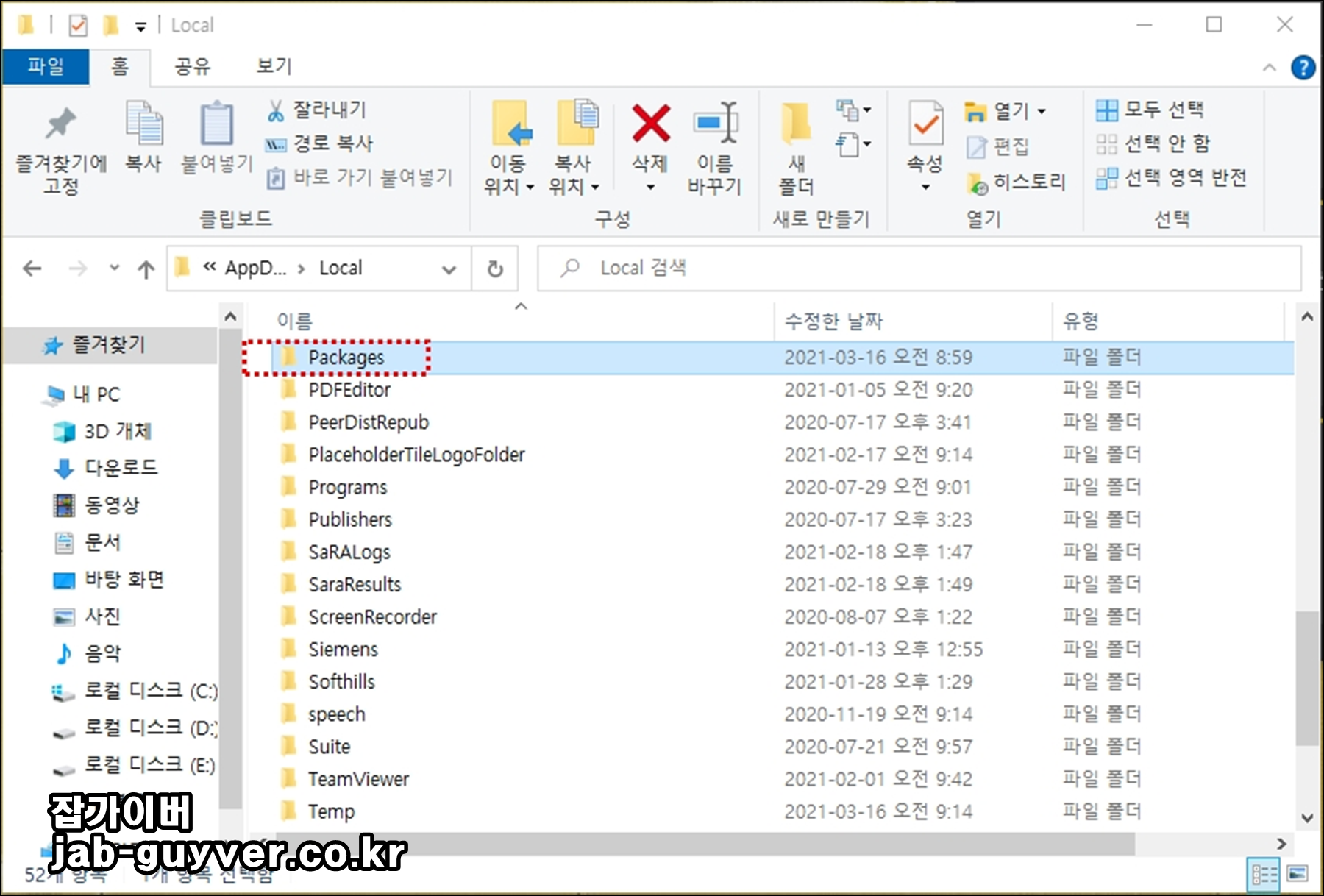 이곳에서 Local > Package 순서로 들어가면 엣지를 포함한 여러 앱 패키지 폴더가 보입니다.