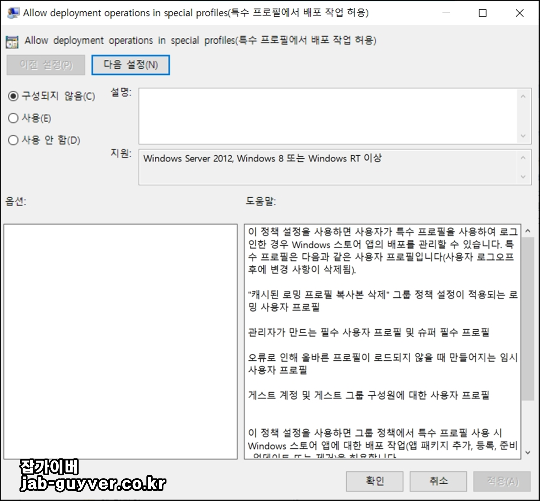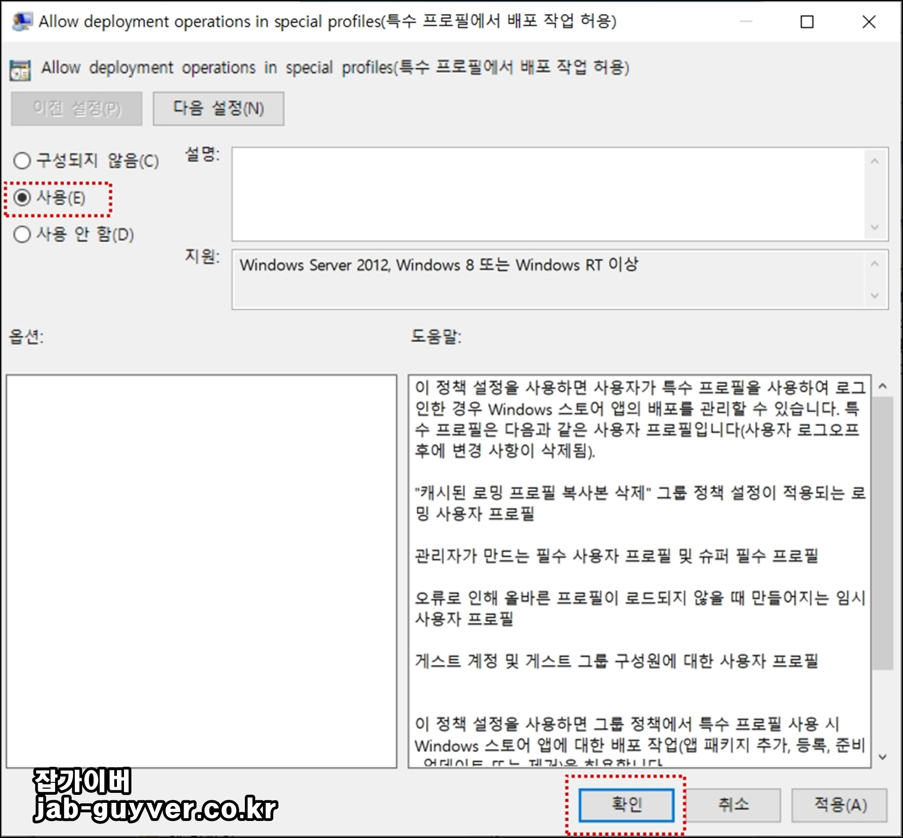 컴퓨터 구성 > 관리 템플릿 > windows 구성 요소 > 앱 패키지 배포