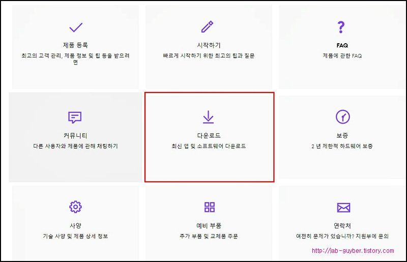 그럼 키보드 or 마우스등 제품에 대한 정품 제품등록부터 보증 및 사양 등 다양한 정보를 확인할 수 있으며 최신 소프트웨어 드라이버를 다운받기 위해서는 다운로드 선택합니다.