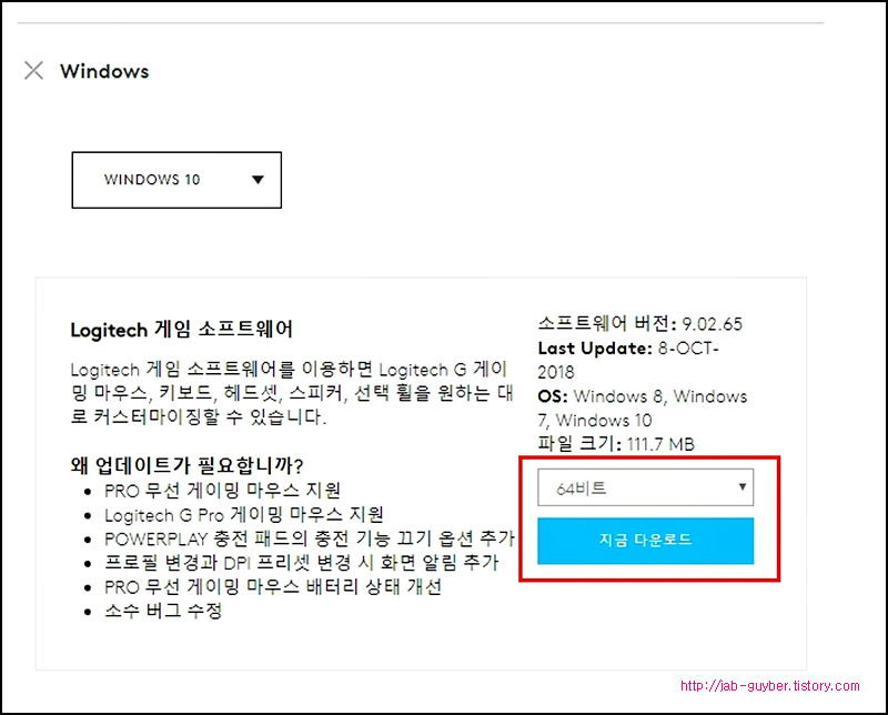 그 리고 다른방법으로는 새롭게 출시한 한글폴더에서도 사용가능한 로지텍 G Hub의 최신버전을 다운로드 받아 설치하는방법도 있습니다.