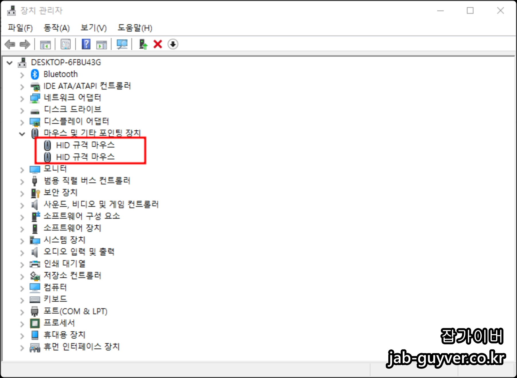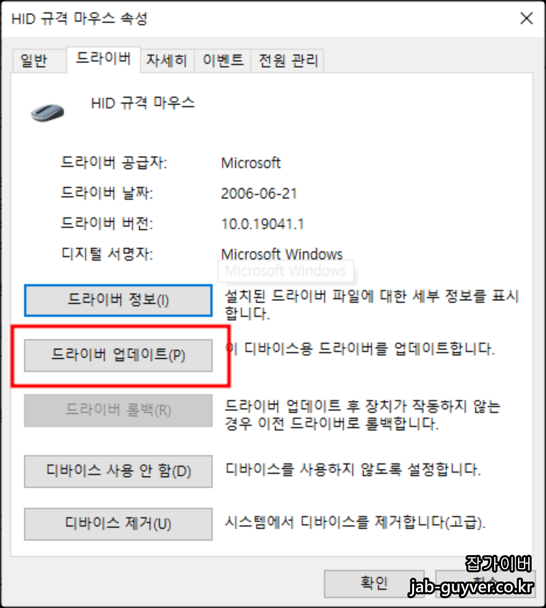 정상적으로 마우스 작동하는지 확인하고 드라이버 업데이트합니다.