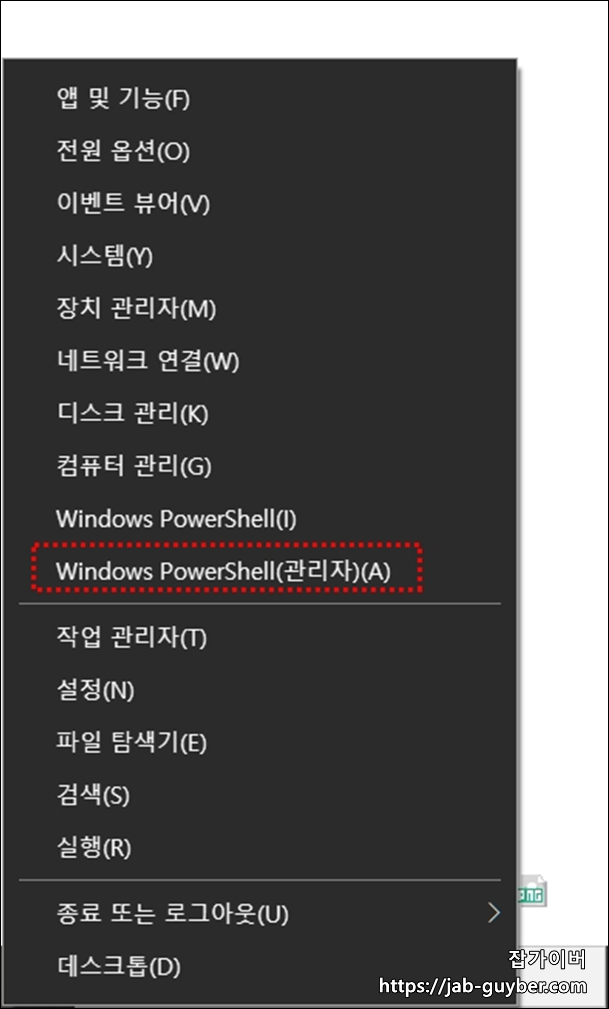 - 윈도키 + X를 눌러 명령 프롬프트 or 윈도우파워셀를 관리자 권한으로 실행합니다.