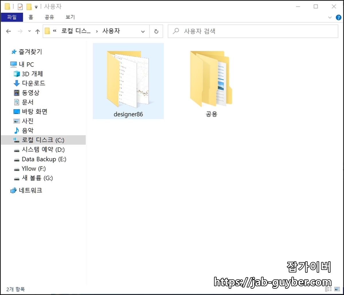 - 내 컴퓨터 -> C 드라이브 -> 사용자명 폴더로 다시 돌아가 계정 명의 폴더를 영문 이름으로 변경합니다.