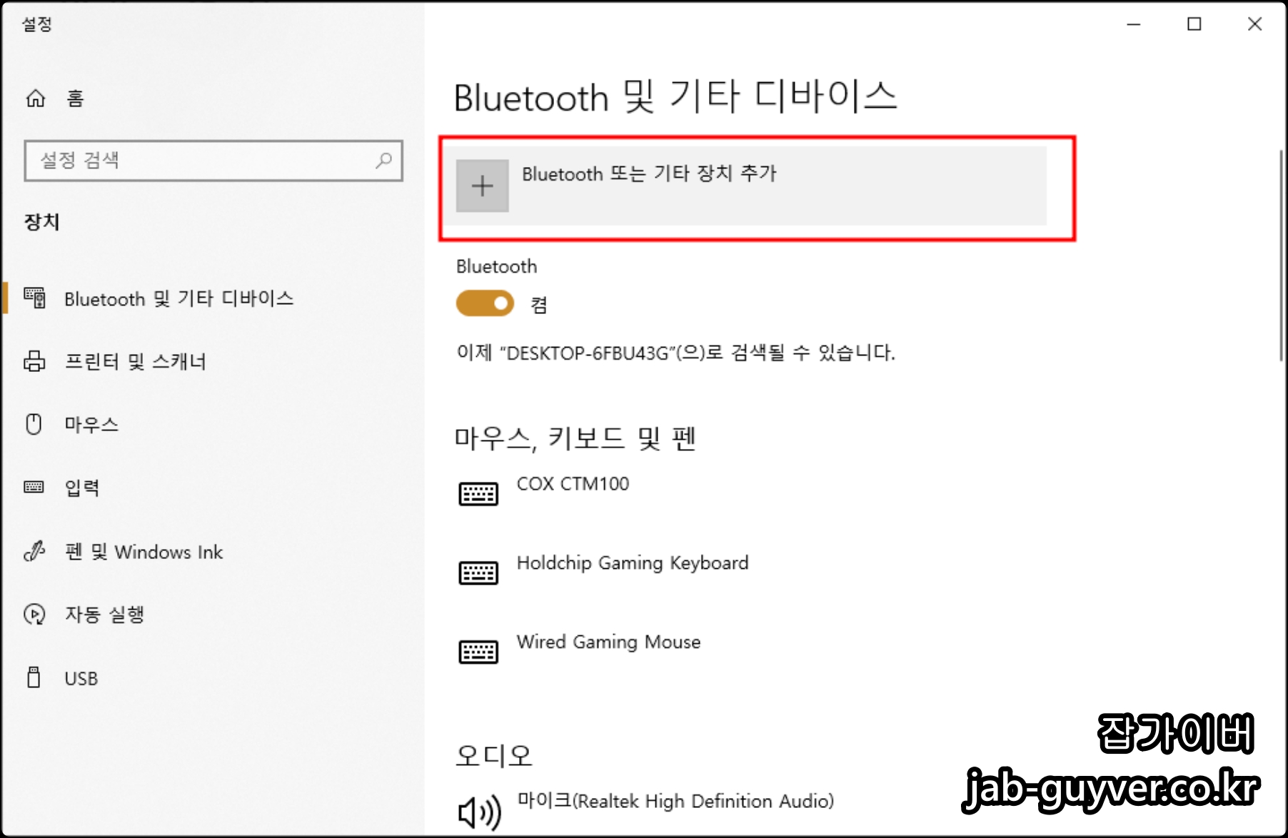 블루투스 마우스라면 BlueTooth 통해 마우스, 키보드, 펜, 오디오 등을 다시 연결합니다.