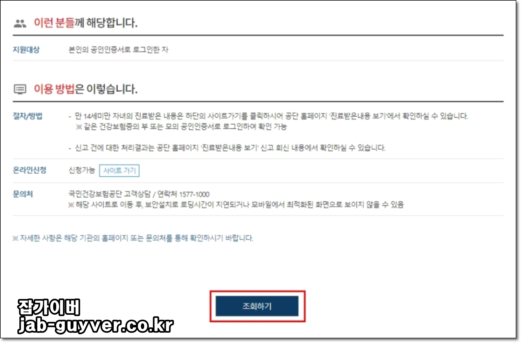 ※ 같은 건강보험증의 부 또는 모의 공동인증서로 로그인하여 확인 가능