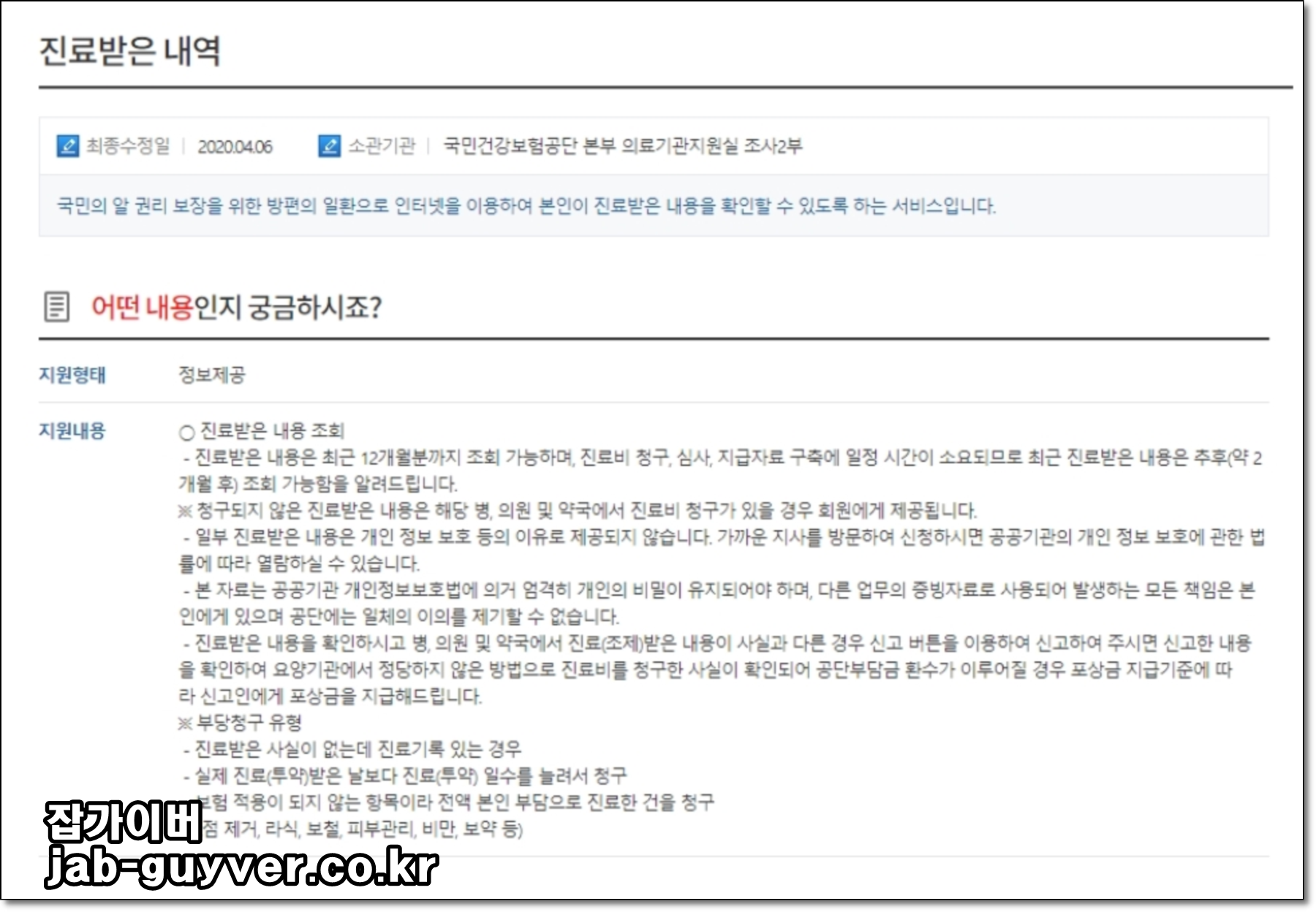 ※ 청구되지 않은 진료받은 내용은 해당 병, 의원 및 약국에서 진료비 청구가 있을 경우 회원에게 제공됩니다.