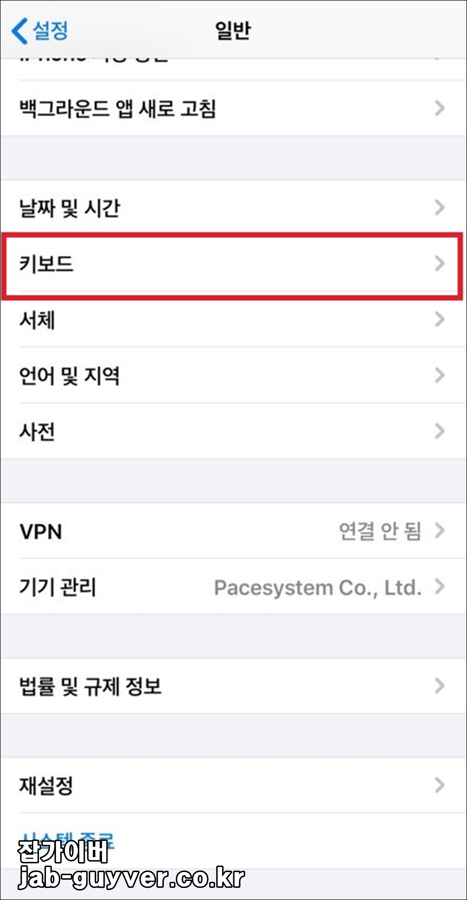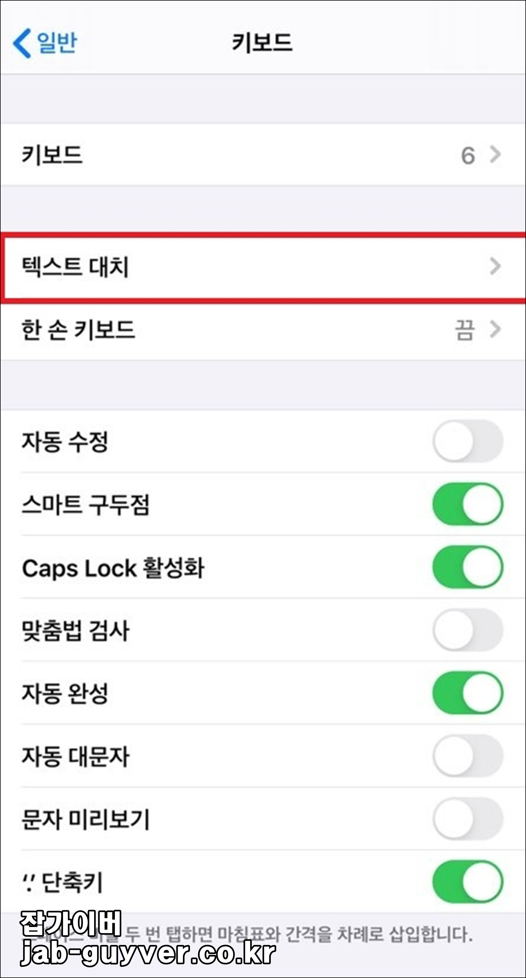 일반 -> 키보드 -> 텍스트 대치를 선택합니다.