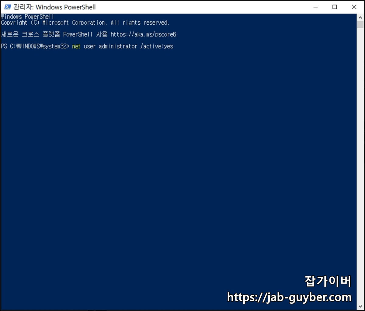 윈도우 로고 마우스 우클릭 "윈도우 파워쉘"관리자를 실행합니다