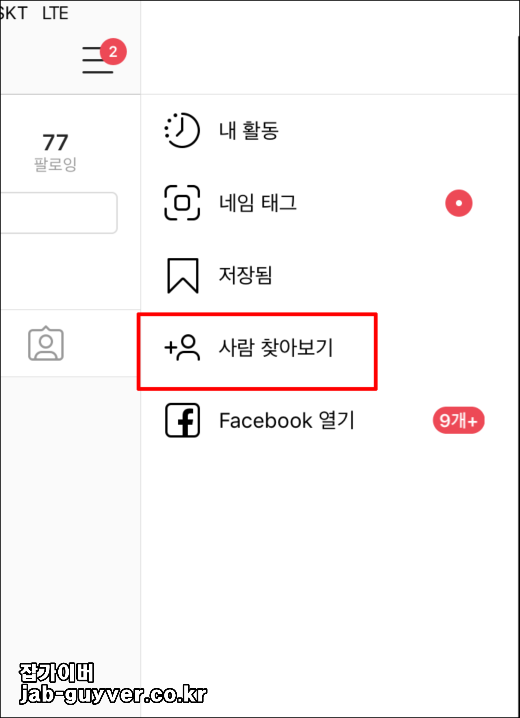 설정 위치(인스타그램)