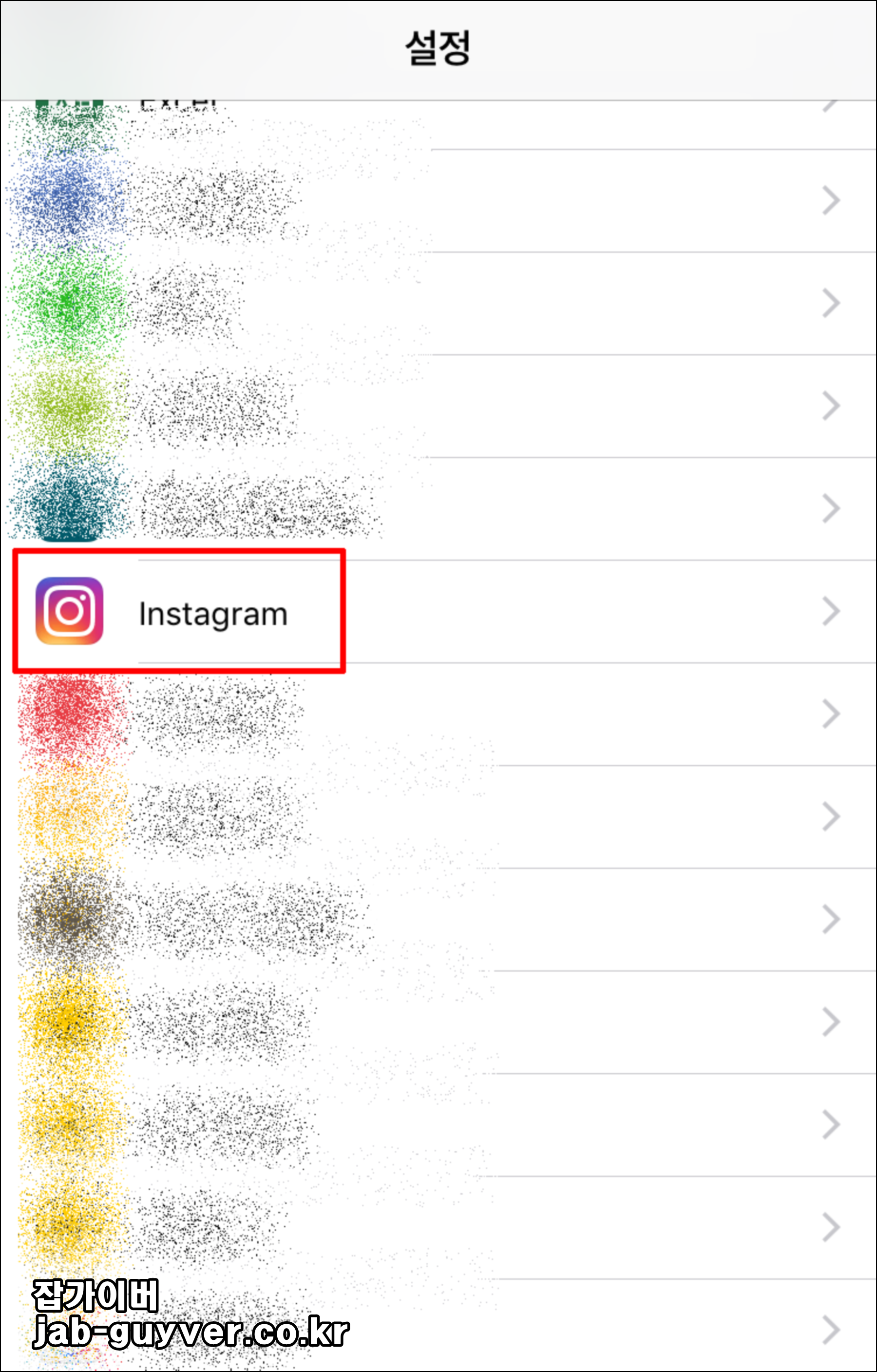 설정에서 Instagram 앱 항목이 보이지 않으면, 앱을 한 번 실행한 뒤 다시 확인하면 나타나는 경우가 있습니다.