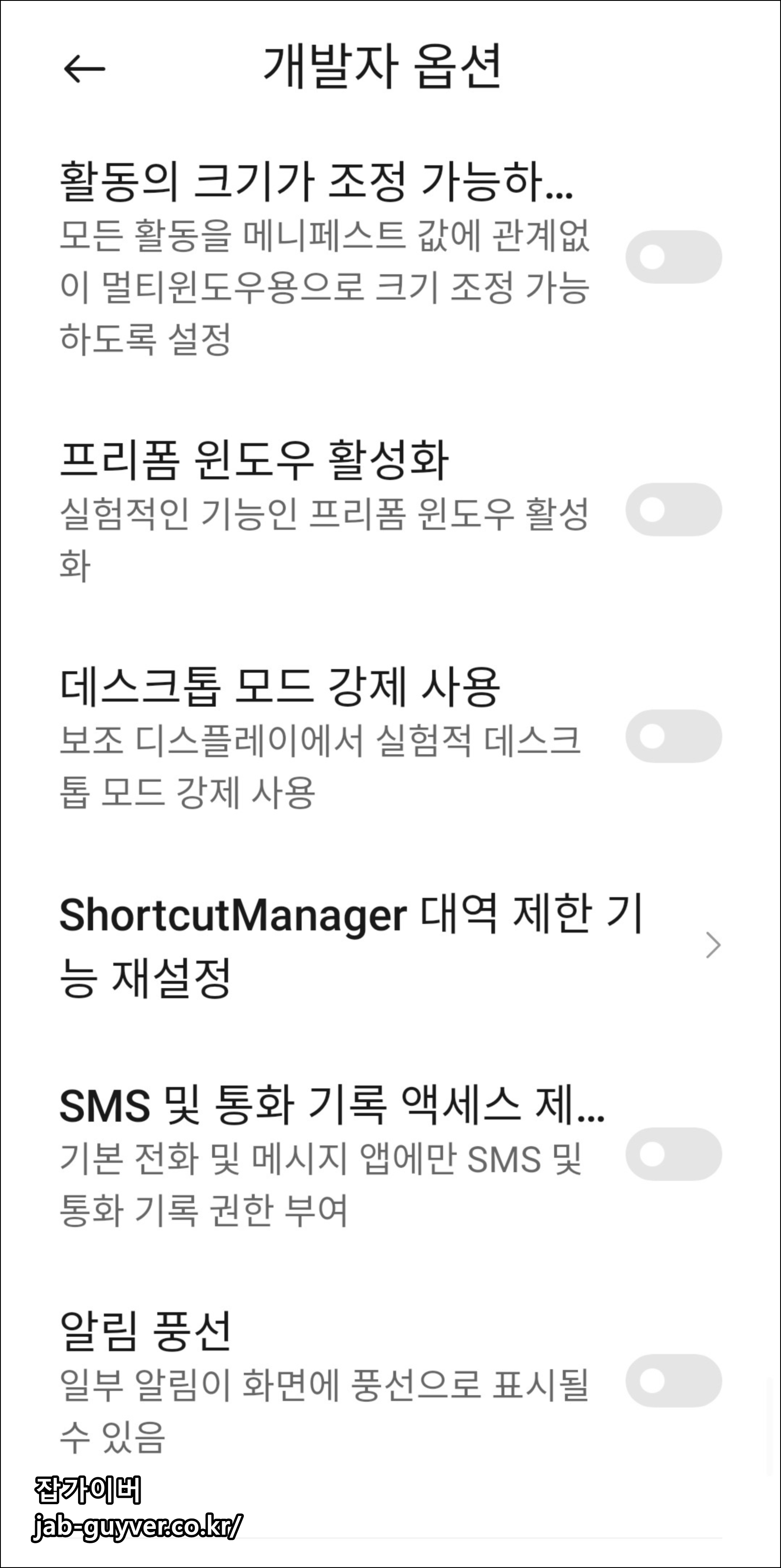 샤오미 개발자 옵션 기능