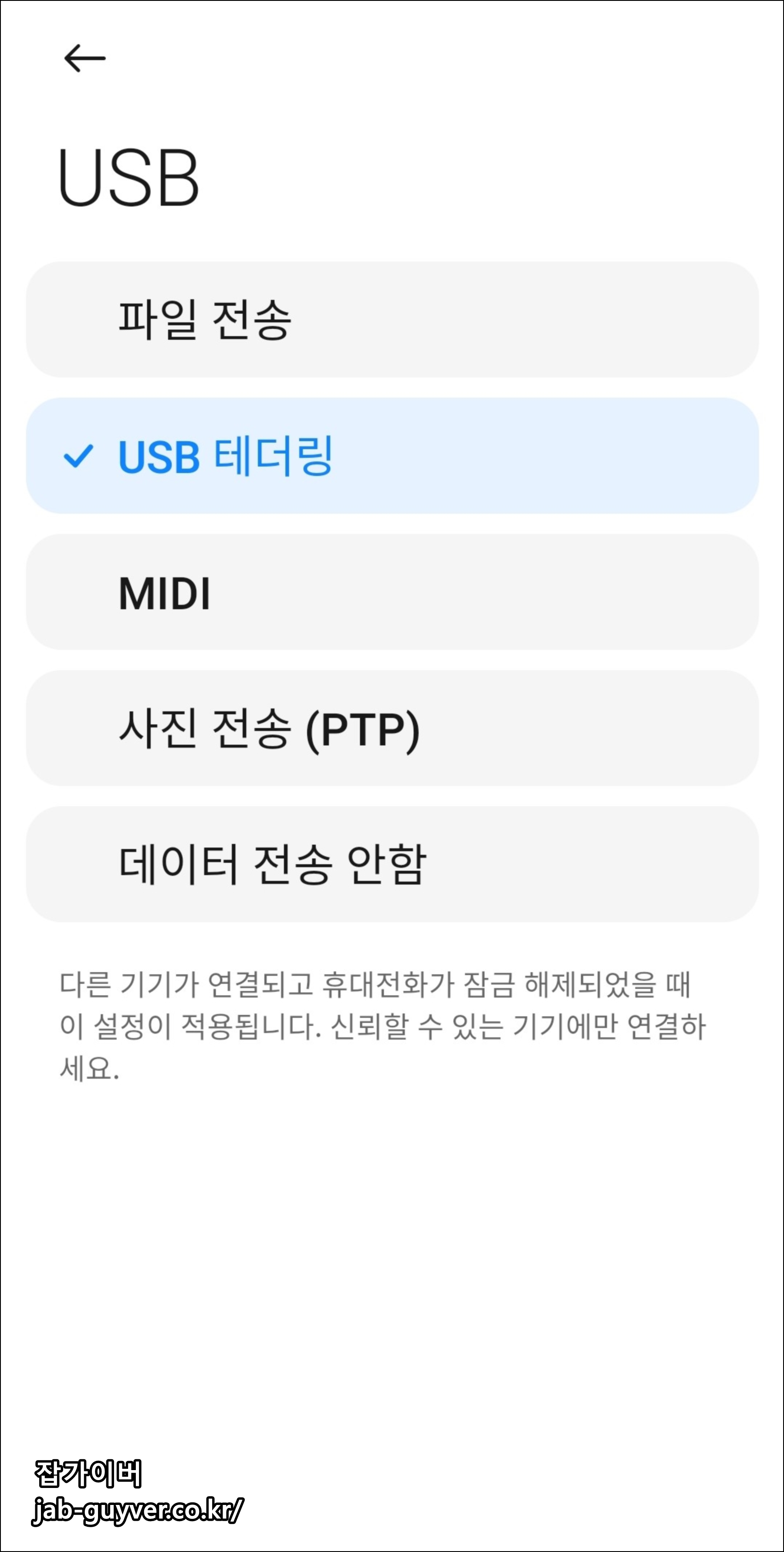 USB 테더링과 USB 디버깅을 동시에 사용할 수 있나요?