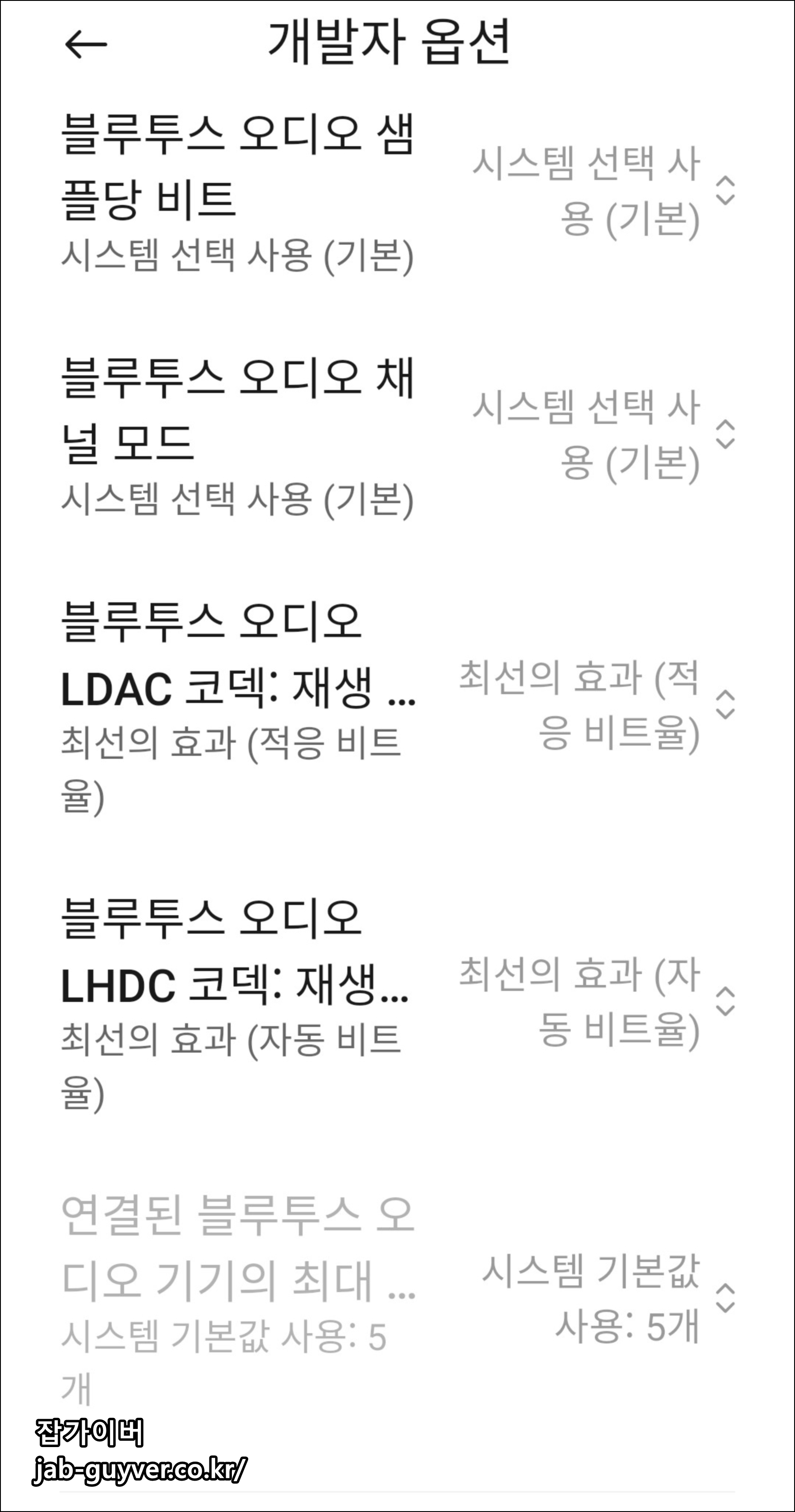 - 블루투스 오디오 샘플당 비트 및 채널 모드, LDAC 코덱 설정