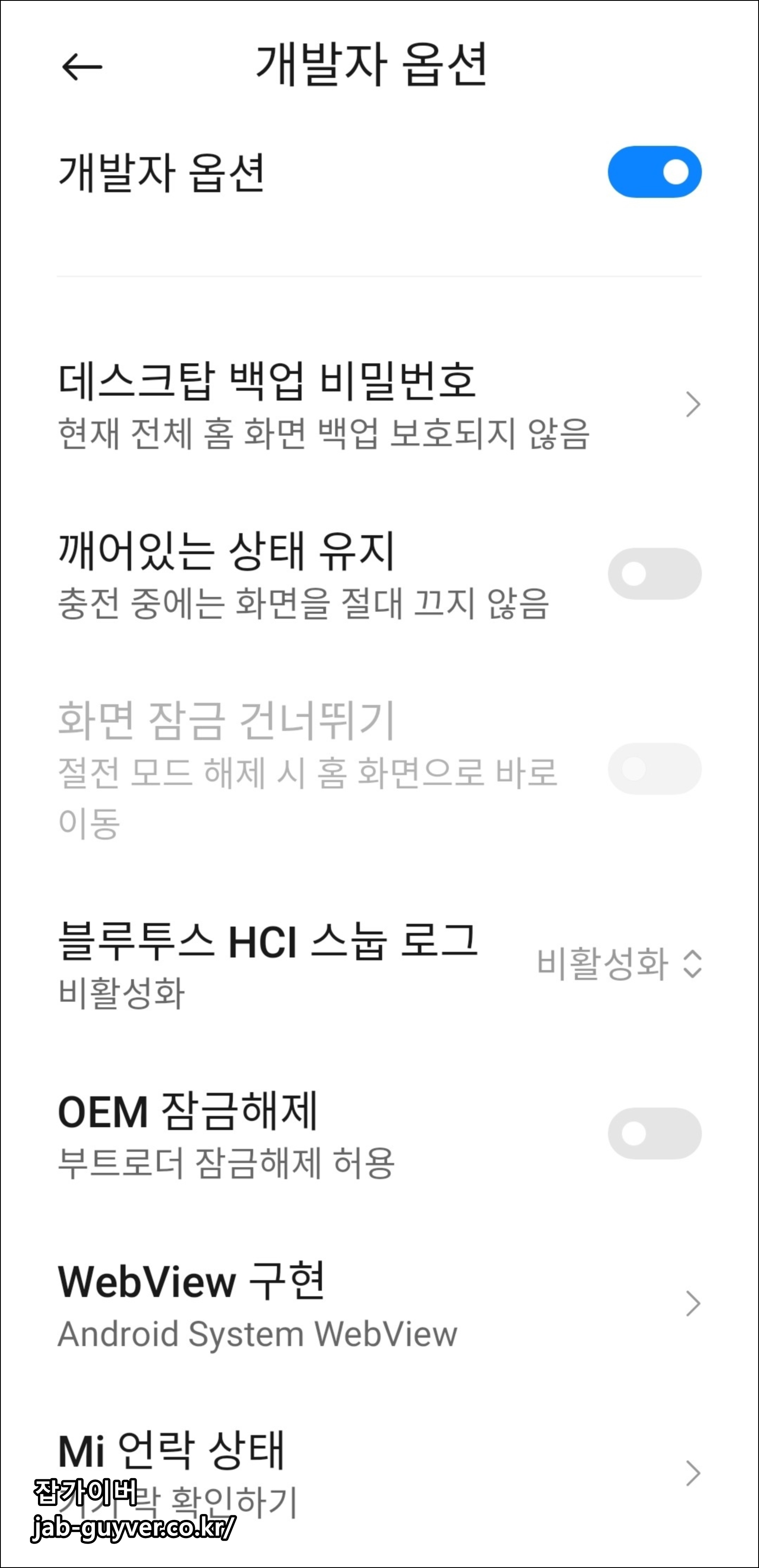 샤오미 개발자 옵션 기능