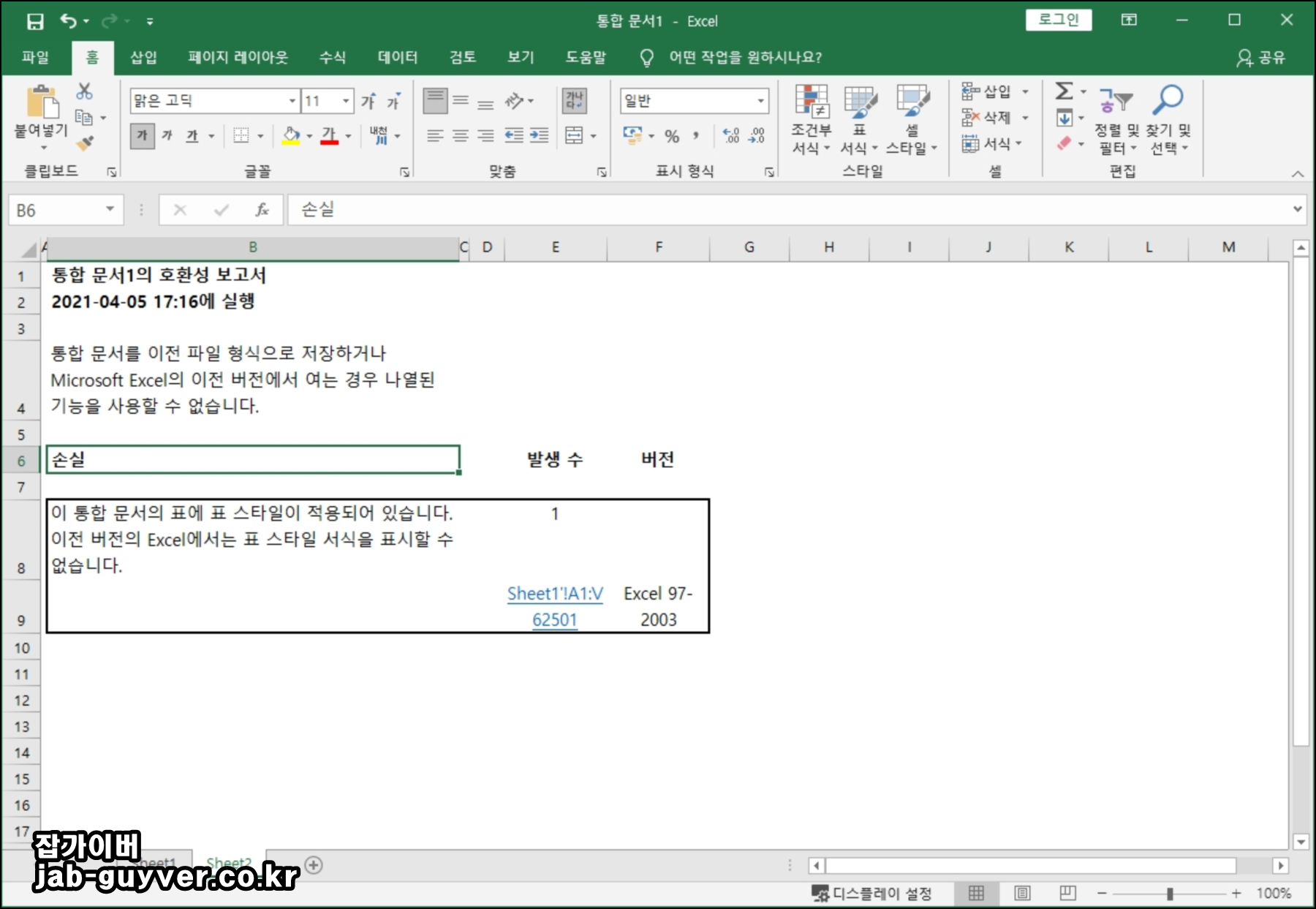 엑셀 호환성 검사