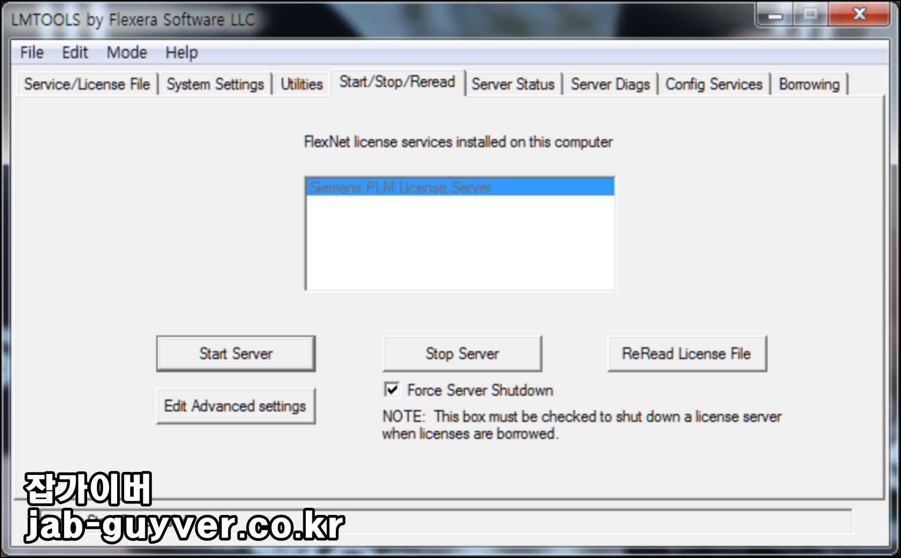 - LMTOOLS에서 라이선스 서버 정보를 재설정한 후 서비스를 다시 시작해야 합니다.