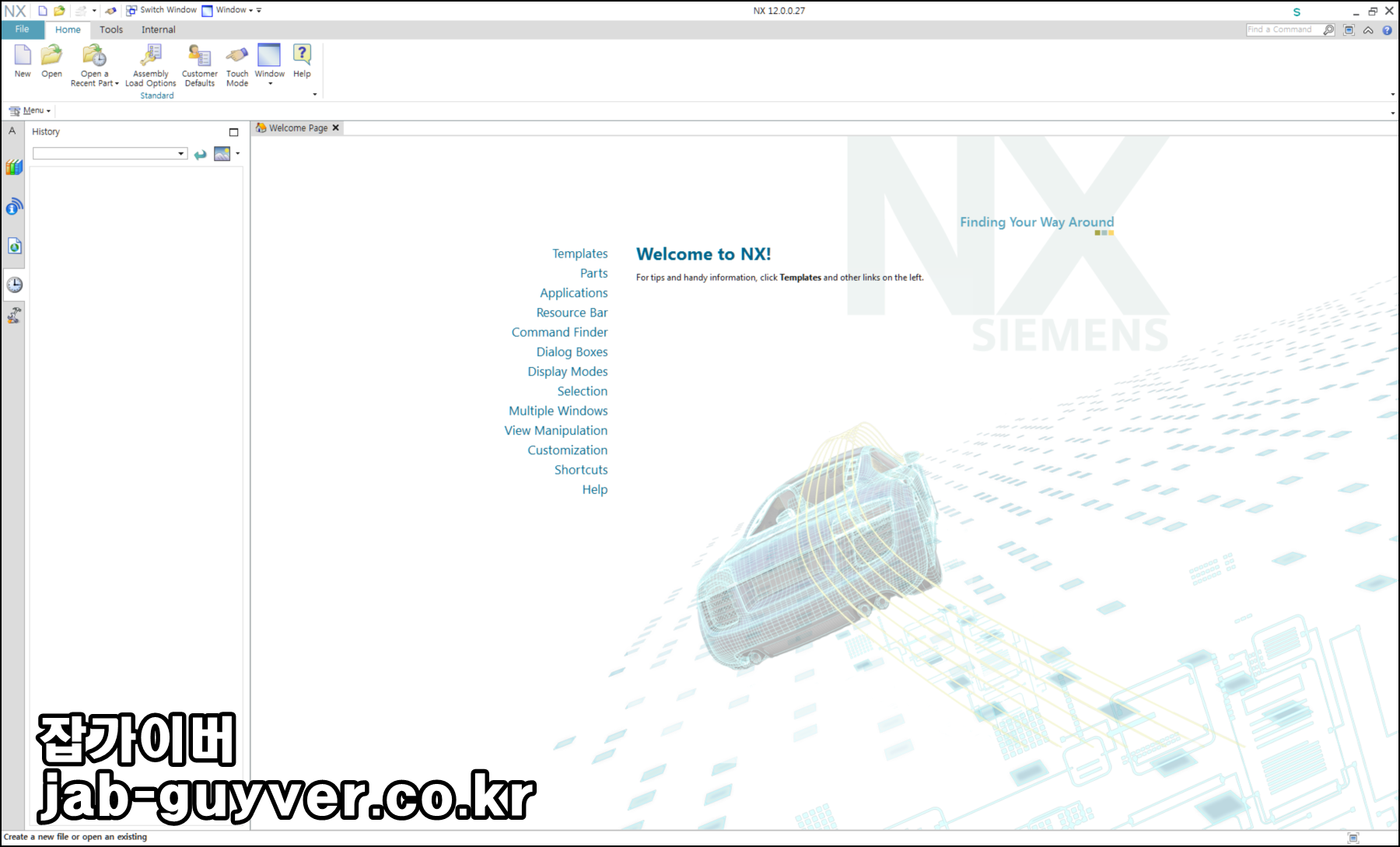 이후 다시 NX12를 실행하니 정상적으로 실행됩니다. 정상적으로 실행된 NX12의 모습입니다.