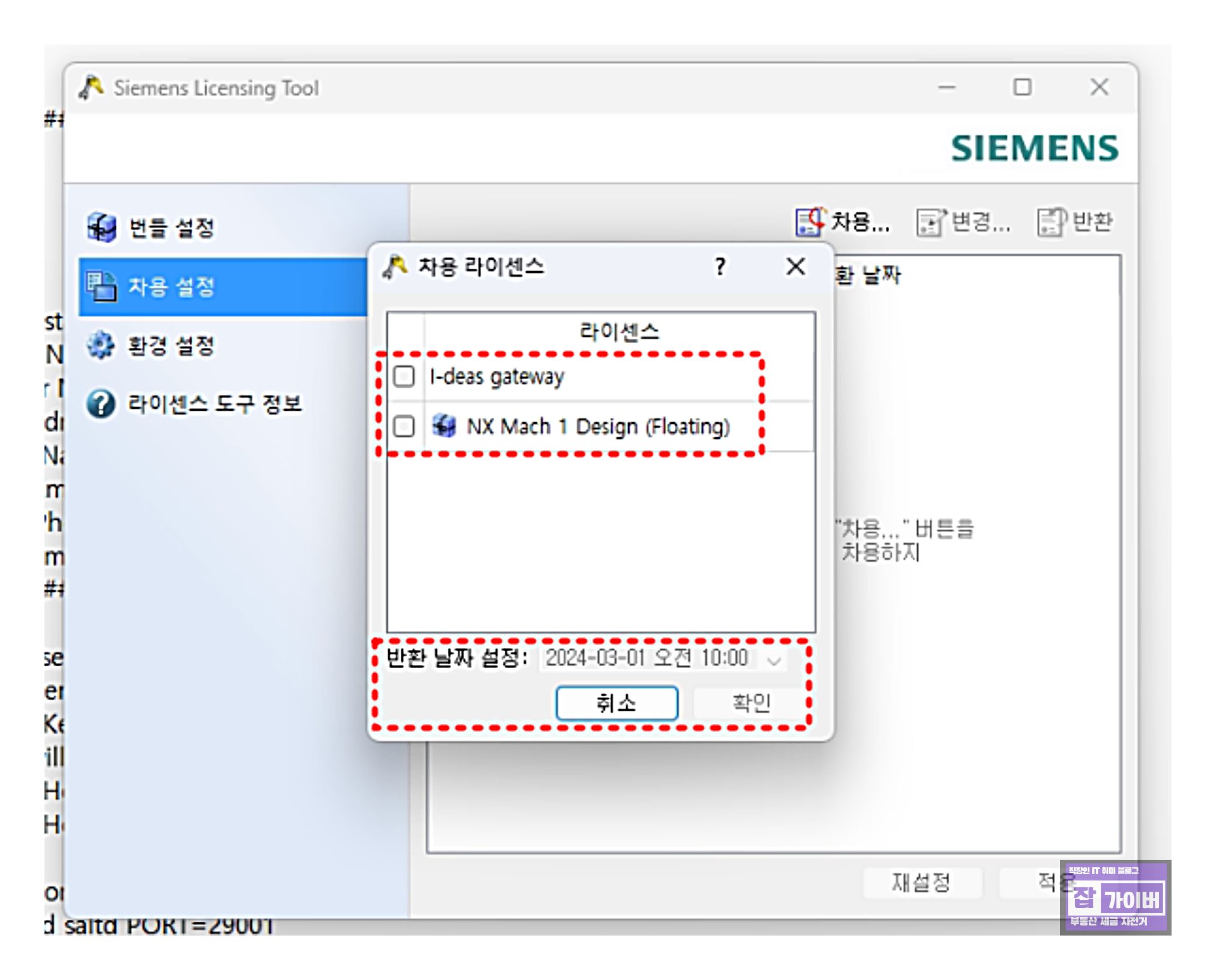 만약 NX가 실행되지 않으면 다시 반납 후 다시 한 번 차용을 시도하면 됩니다. 때로는 네트워크 상의 오류나 라이센스 부족으로 차용이 되지 않을 수 있으니 여러 번 시도해보시기 바랍니다.