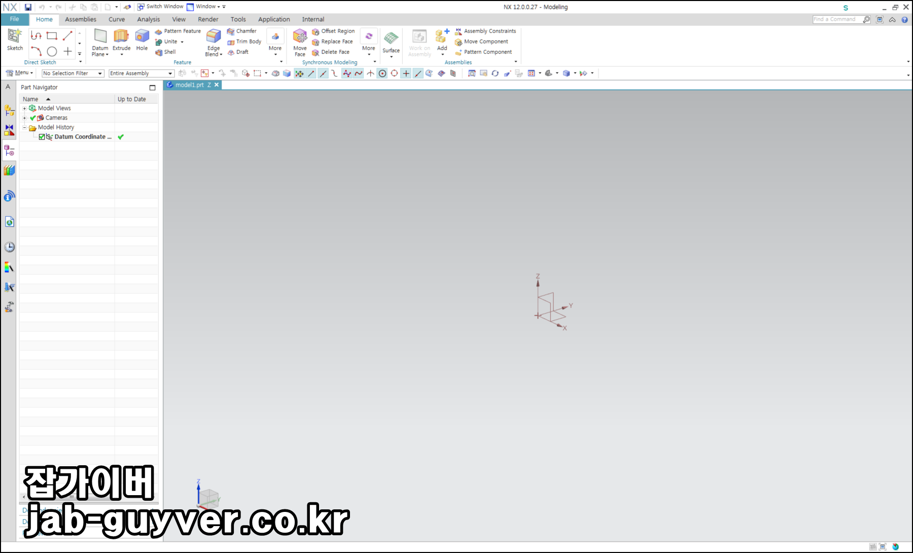 간단히 모델링 모드로 들어가 보았으며 NX11과는 크게 변한 것이 보이지 않는 NX12의 인터페이스입니다.