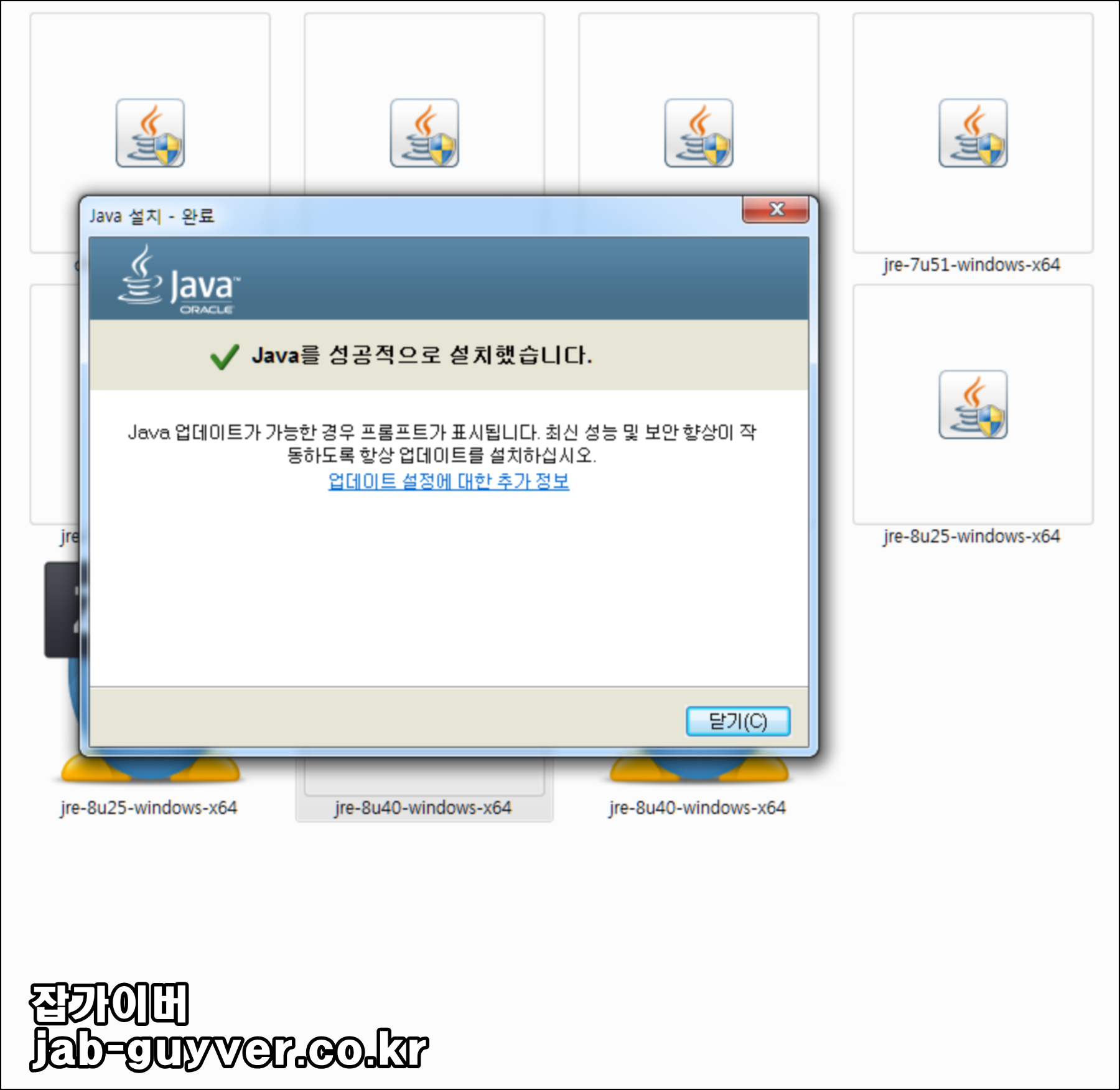 윈도우에서 다양한 프로그램을 설치하거나 실행시 자바는 없어서는 안될 프로그램중 하나인데 그 이유는 자바기반으로 만들어진 프로그램이 많기 때문입니다. 보통은 자바 설치버전은 최신버