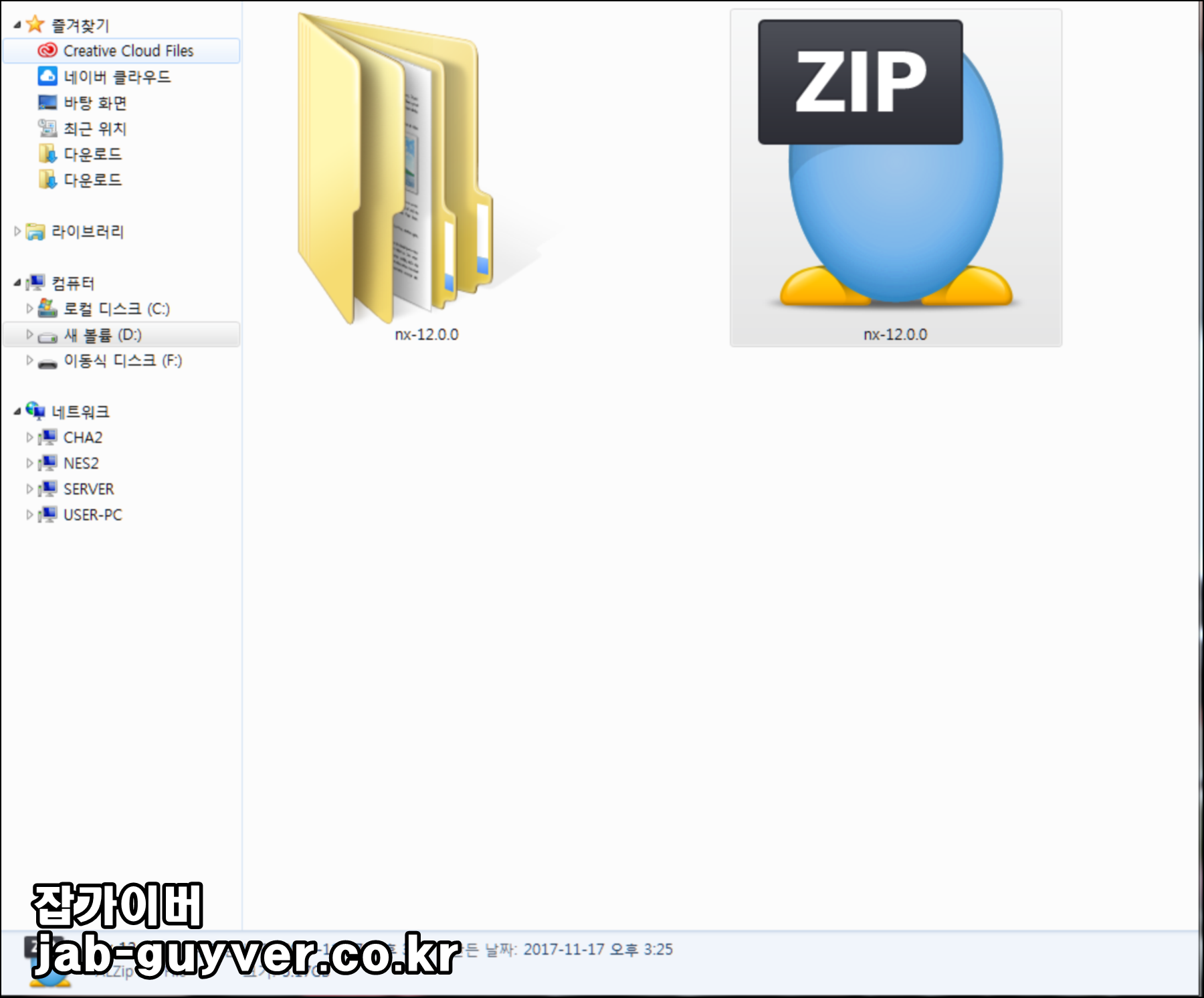 용량은 저번에 비하면 NX11 기준 1기가 정도 증가하였으며 압축을 풀고 설치를 진행합니다.