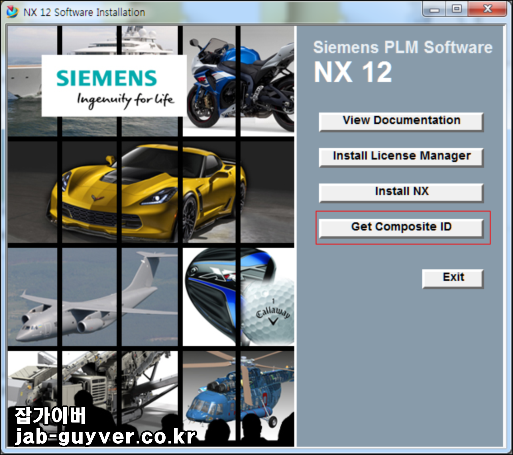 NX12의 설치 화면이며 12의 디자인은 좀 더 그래픽적인 요소 변경되었으며 GET Composite ID를 클릭합니다.