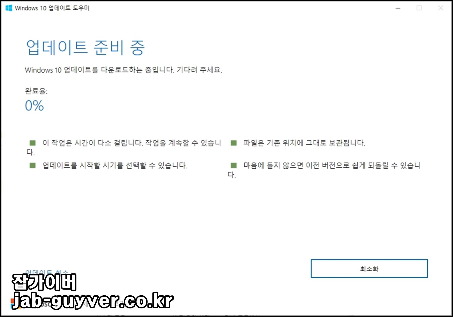 이후 별도의 설정없이 바로 윈도우10 무료 업그레이드가 진행됩니다.