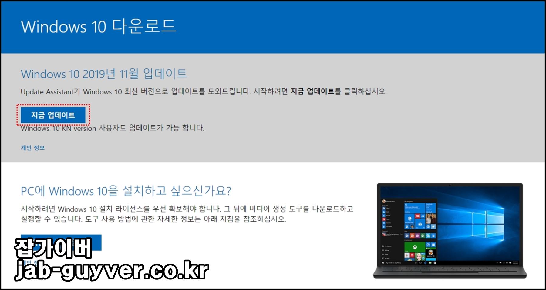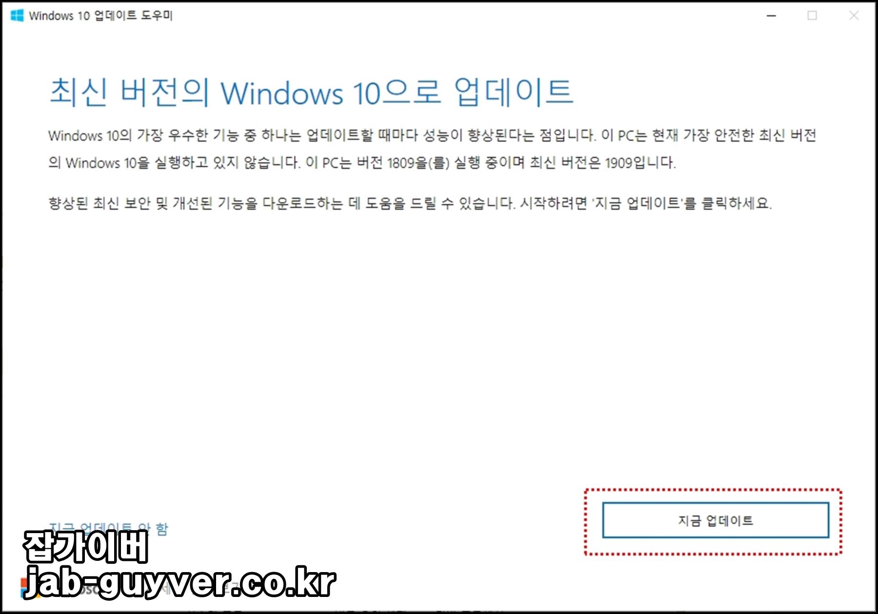 윈도우10 지금 업데이트를 선택하면 최신버전으로 자동 업데이트됩니다
