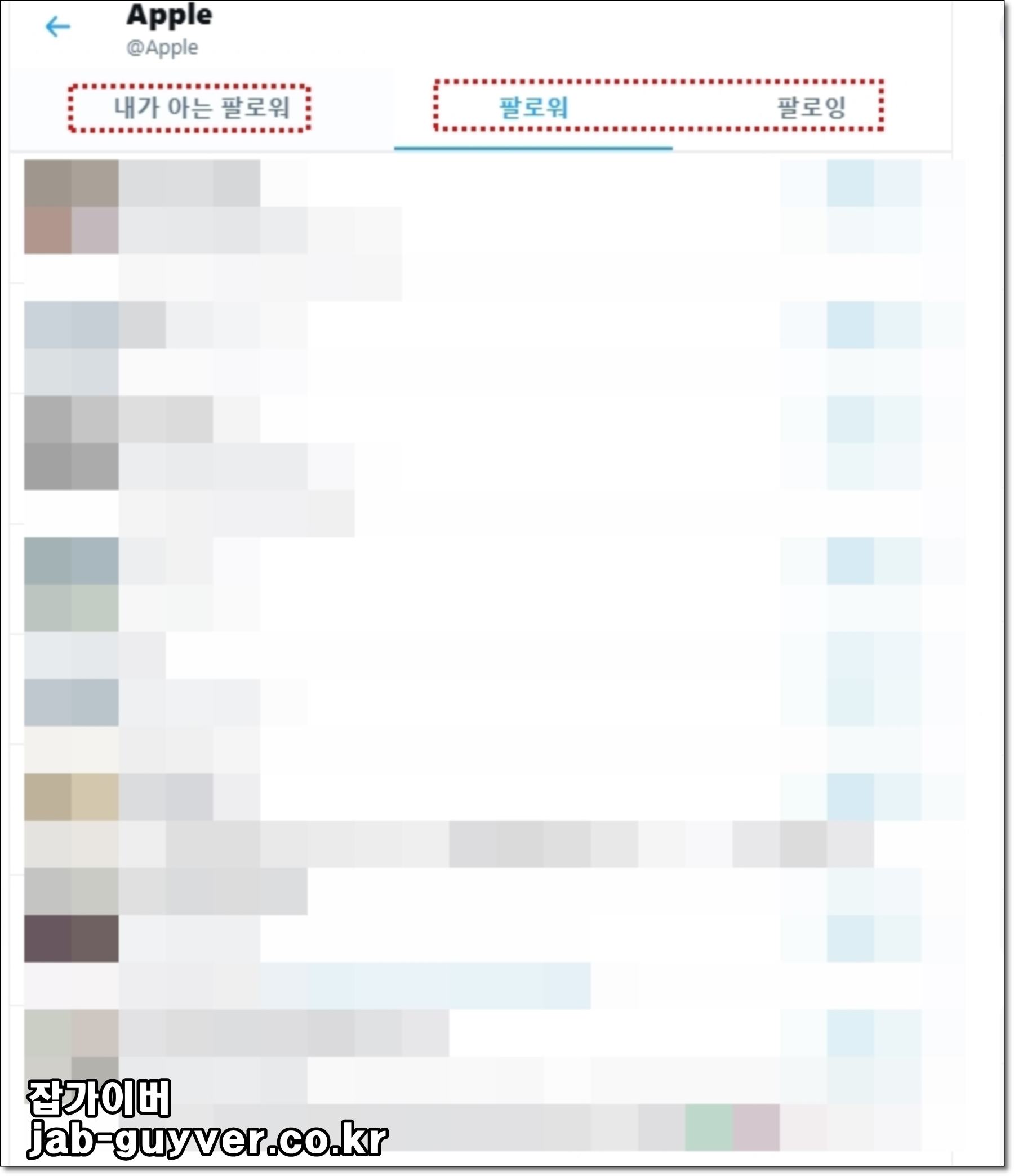 이후 차단하고자 하는 트위터 계정으로 들어가 팔로우와 팔로워를 선택합니다