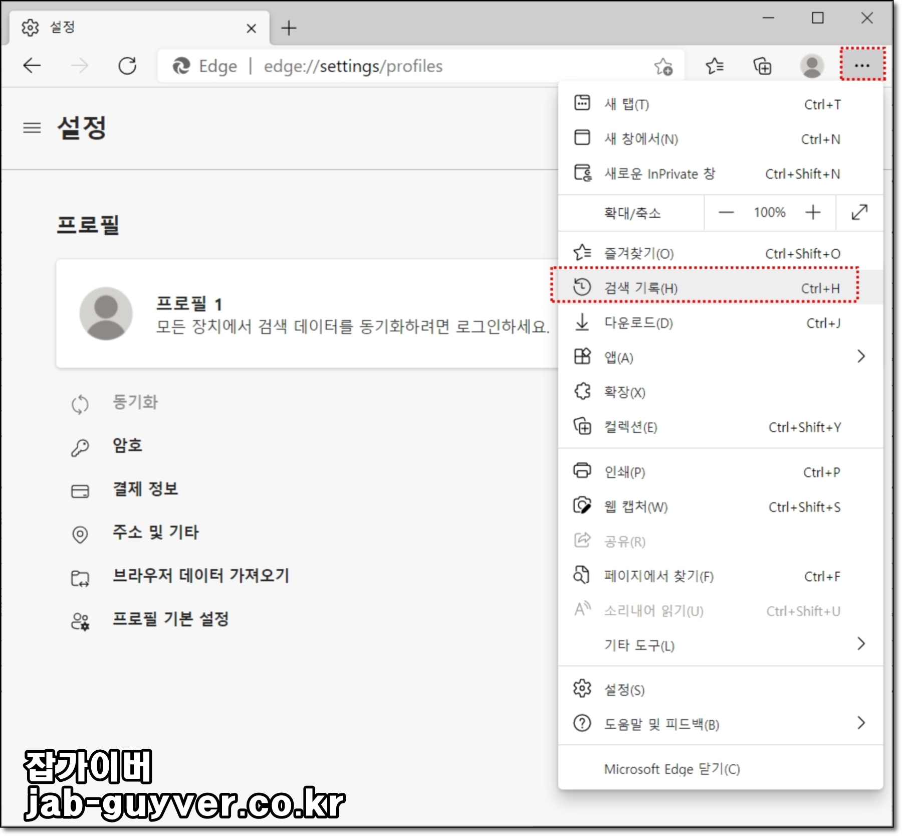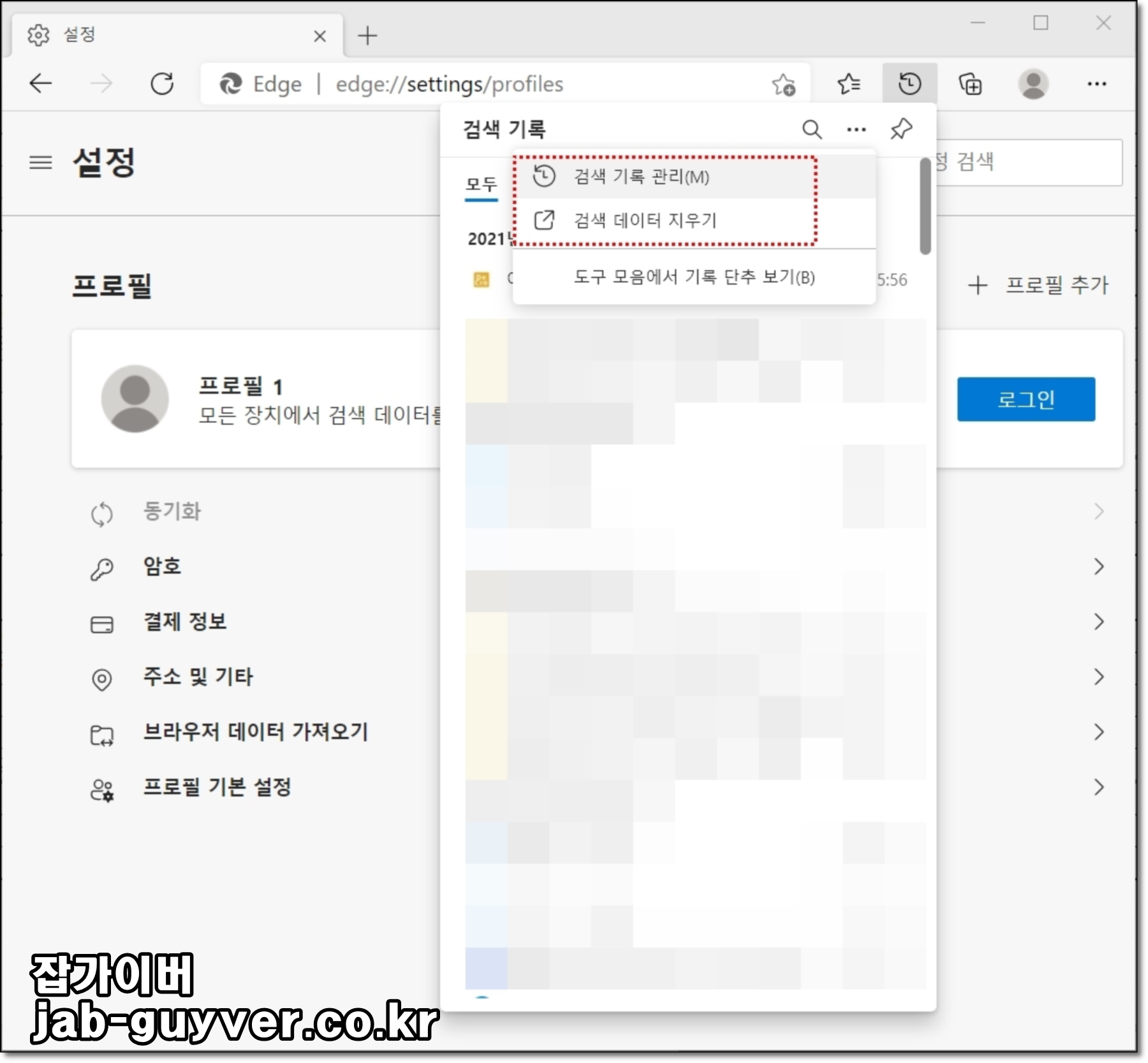 - 검색 기록을 선택합니다.