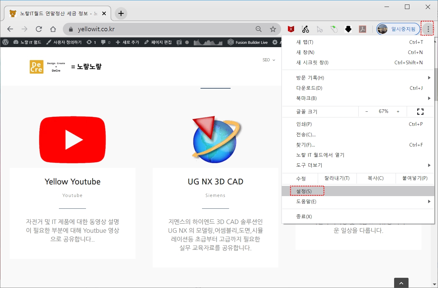 - 인터넷 익스플로러 실행 후 기어 아이콘 “인터넷 옵션“을 선택합니다.