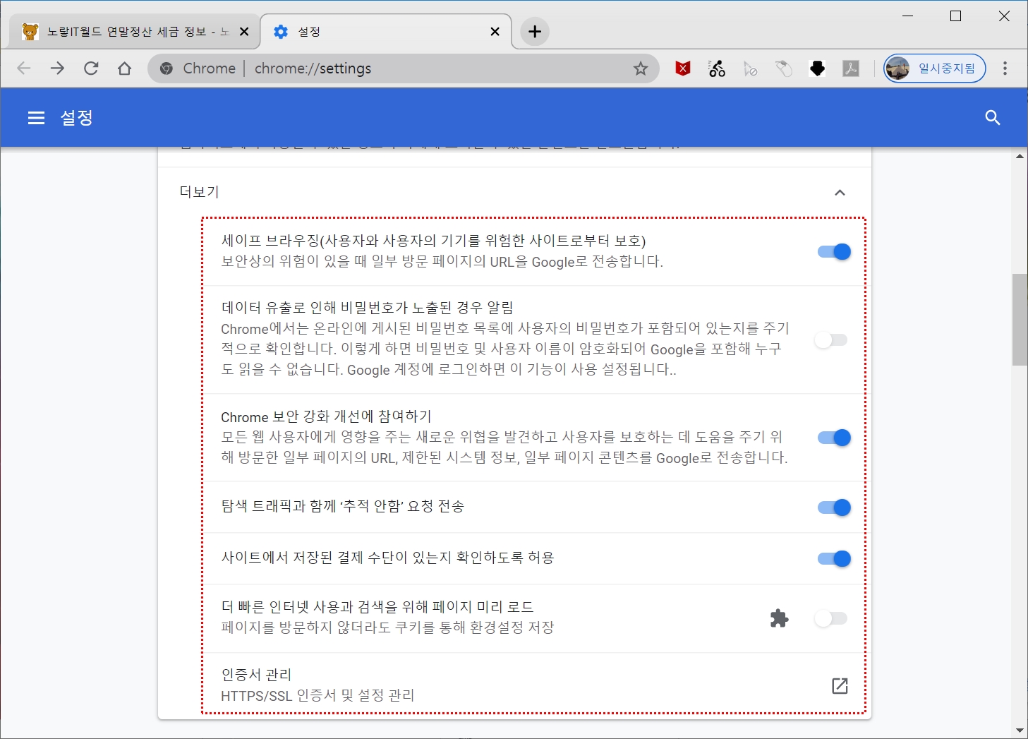 구글 크롬 캐시 삭제