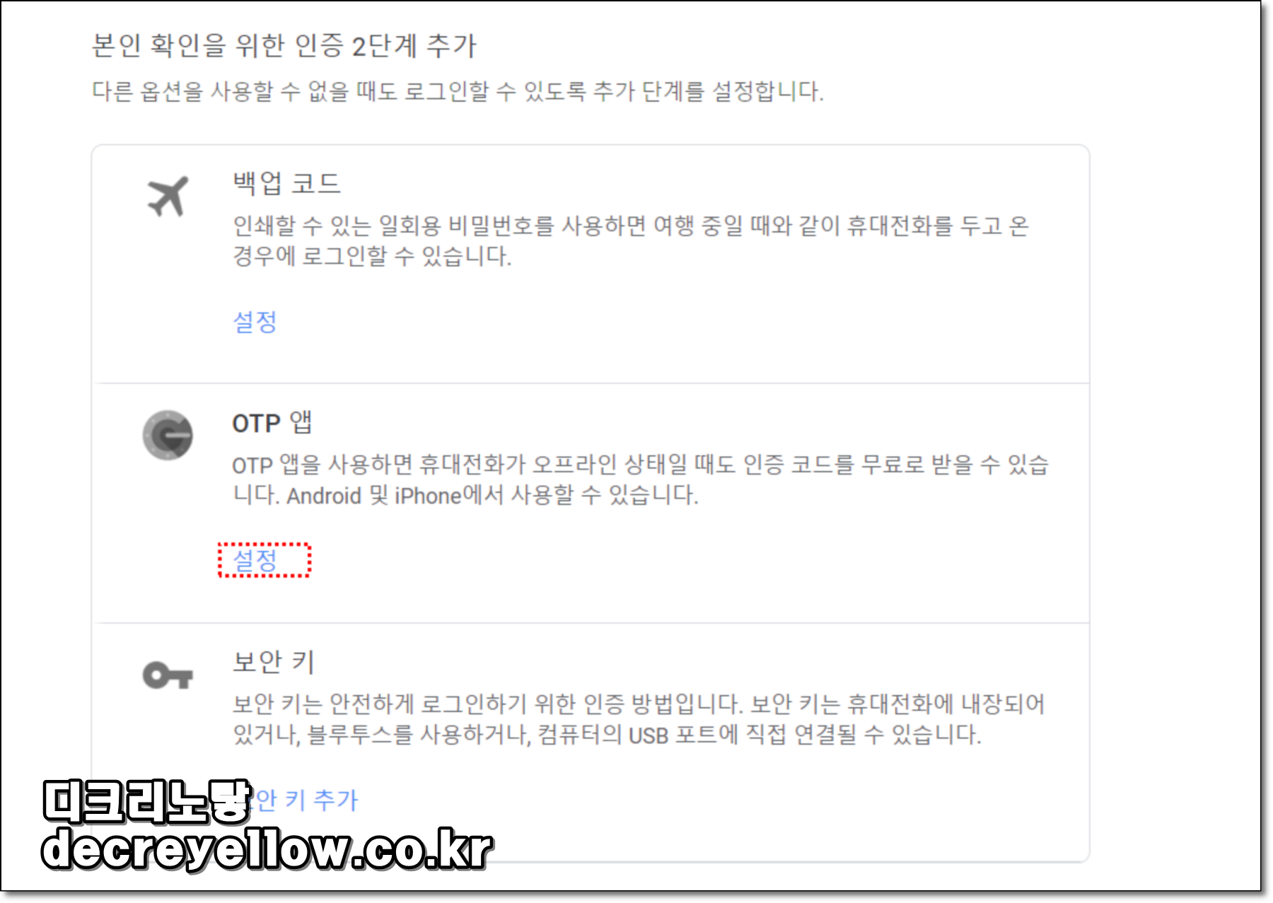 구글 OTP 2단계 인증 활성화 및 분실 복구방법 - 노랗IT월드