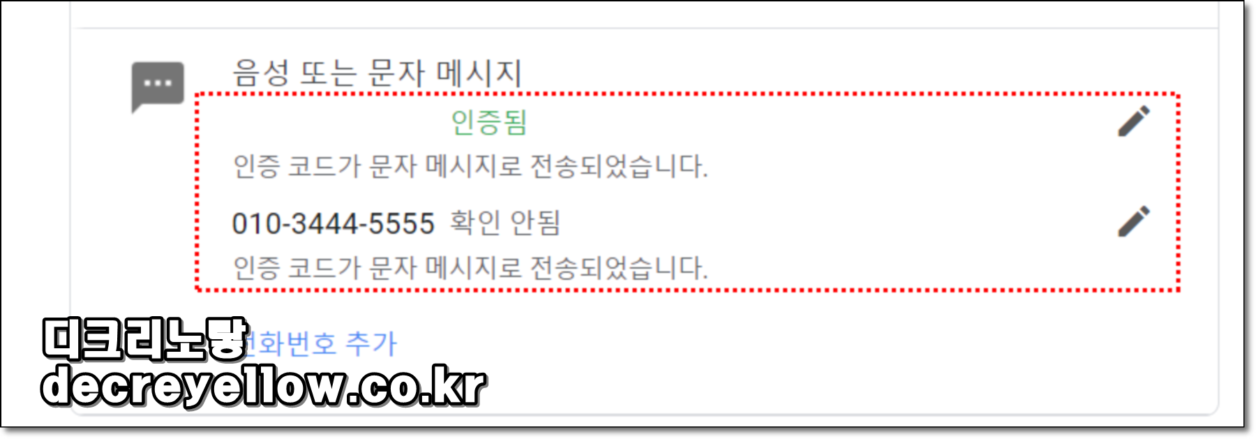 그리고 여기서 휴대전화번호 변경하거나 새롭게 추가할 수 있습니다.