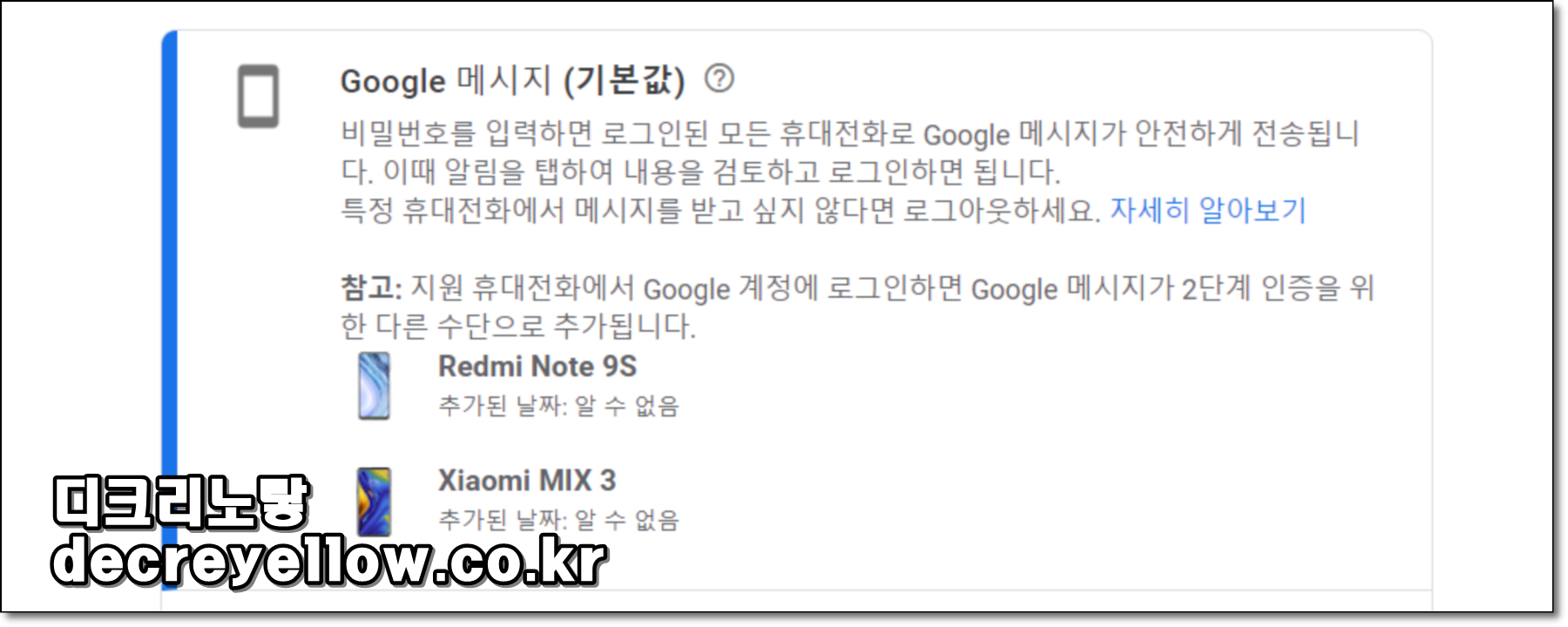 | 전화번호 추가 | 1. ‘2단계 인증’ 설정 페이지 하단의 ‘전화번호 추가’ 클릭 2. 새 번호 입력 후 문자 or 전화로 인증 |