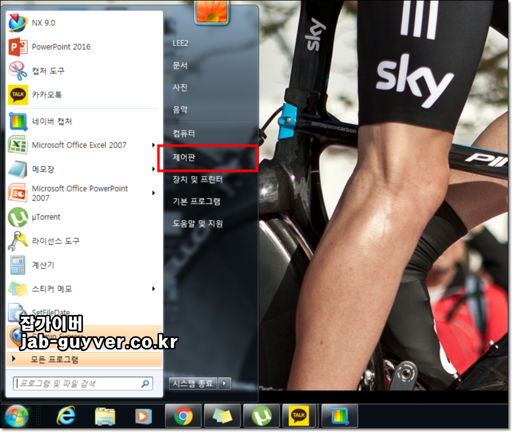 - 이에 대해서 IPv6를 체크 해제함"으로서 해결할 수도 있어서 이 부분도 체크하기 위해서 "시작 버튼"에서 "제어판"으로 들어가 봅니다.