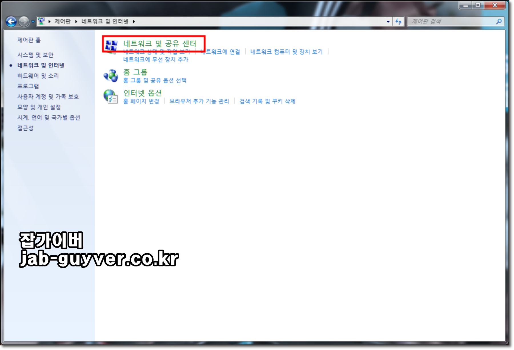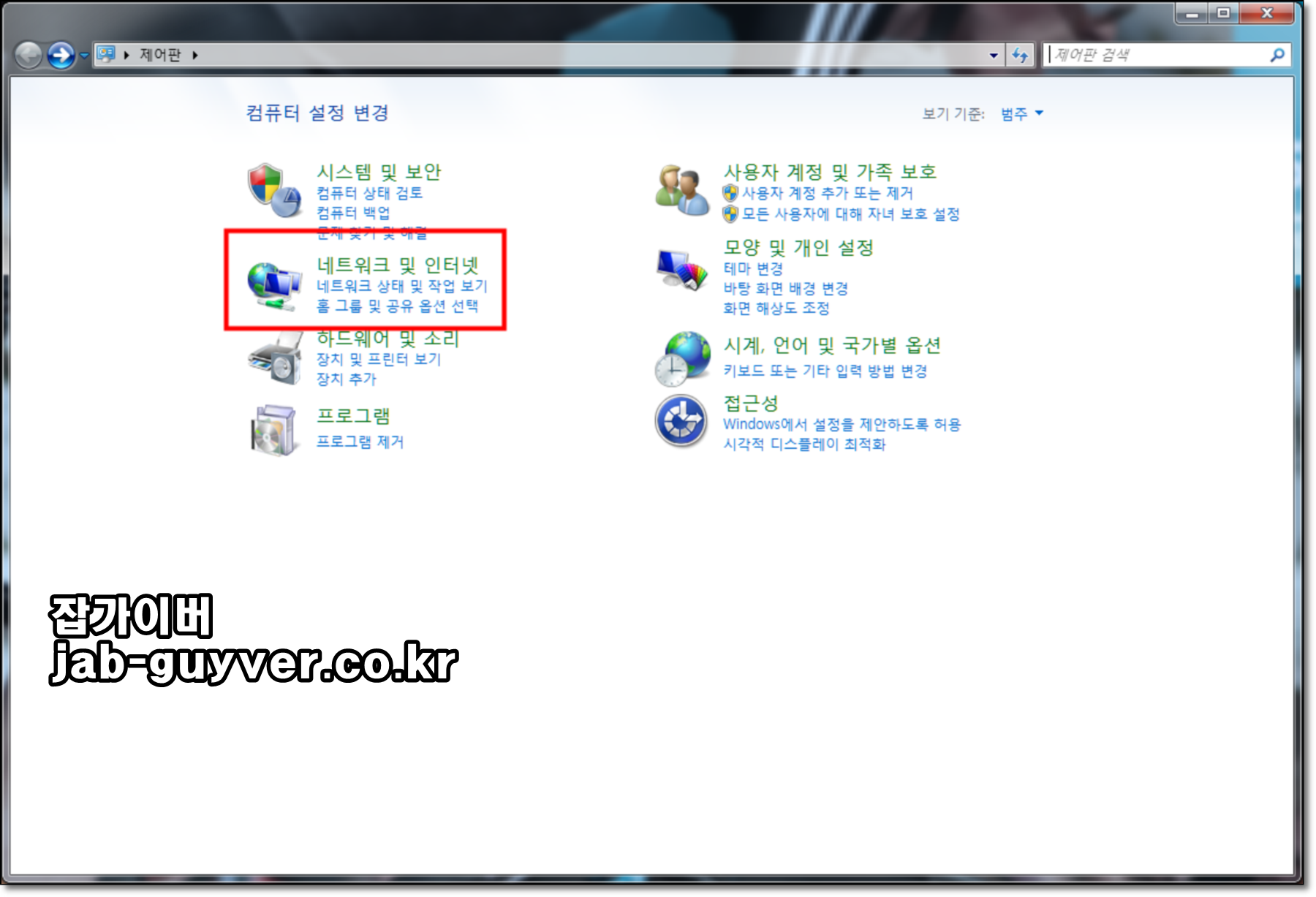 - 제어판에서 "네트워크 및 인터넷"으로 들어갑니다.