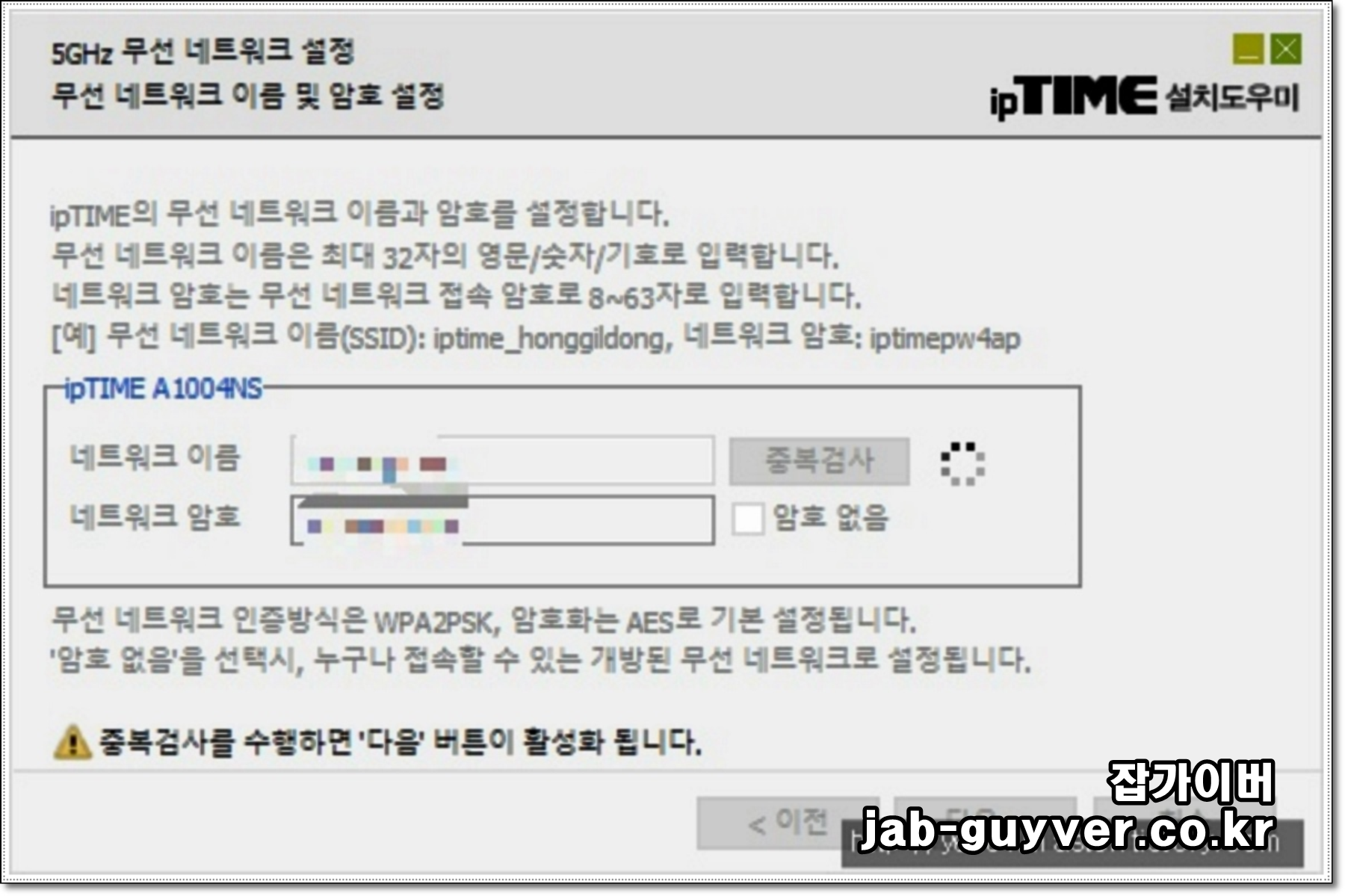 와이파이 암호는 12자리 이상으로, 영문/숫자/특수문자를 섞어두면 체감 보안이 확 올라갑니다. 설정을 저장하면 2.4GHz 쪽 아이피타임 공유기 와이파이 설정은 끝입니다.