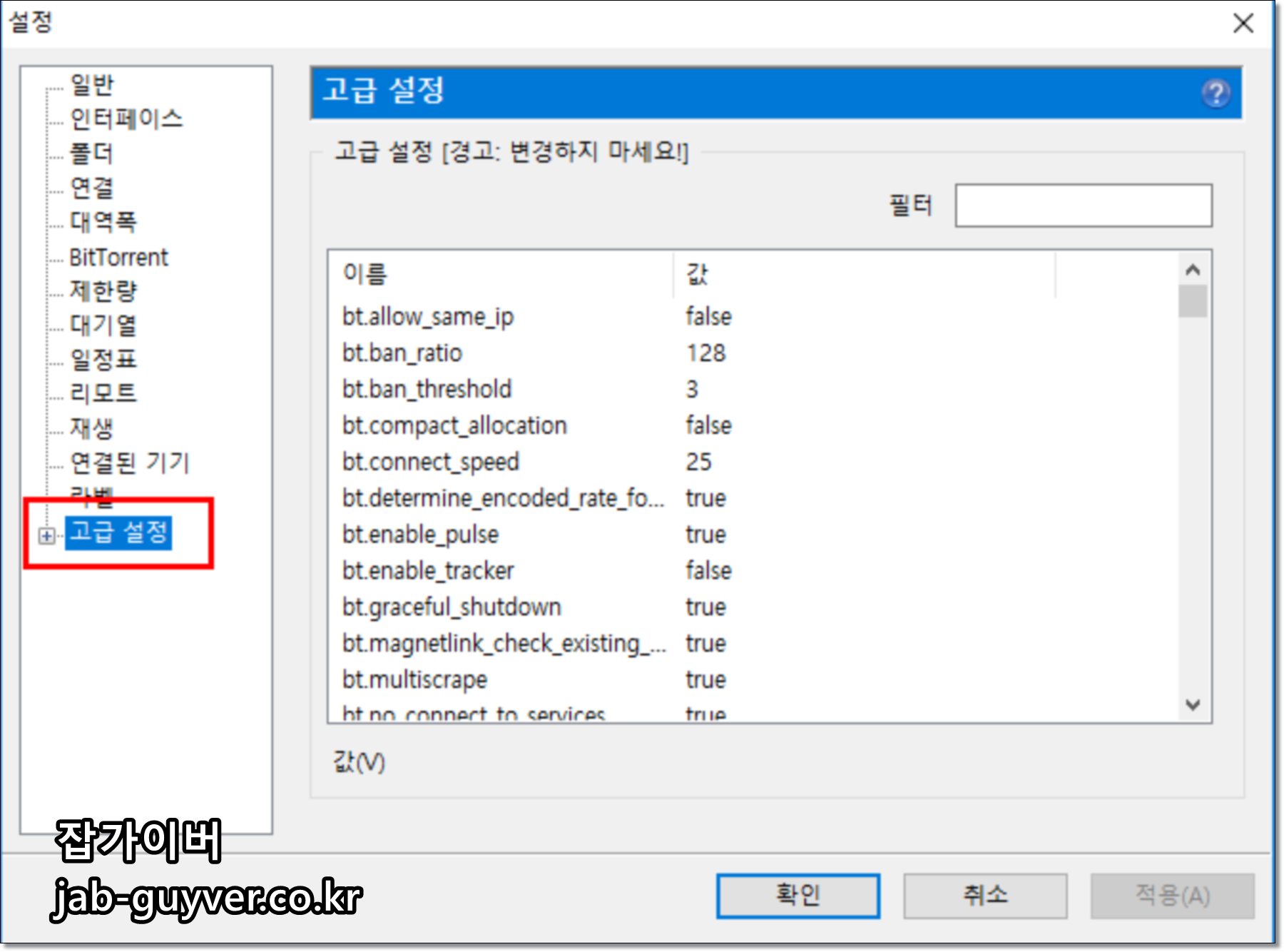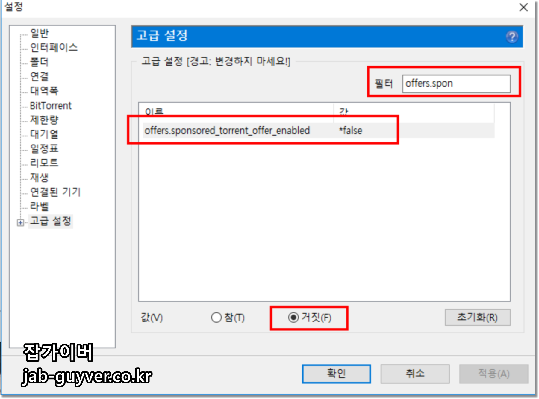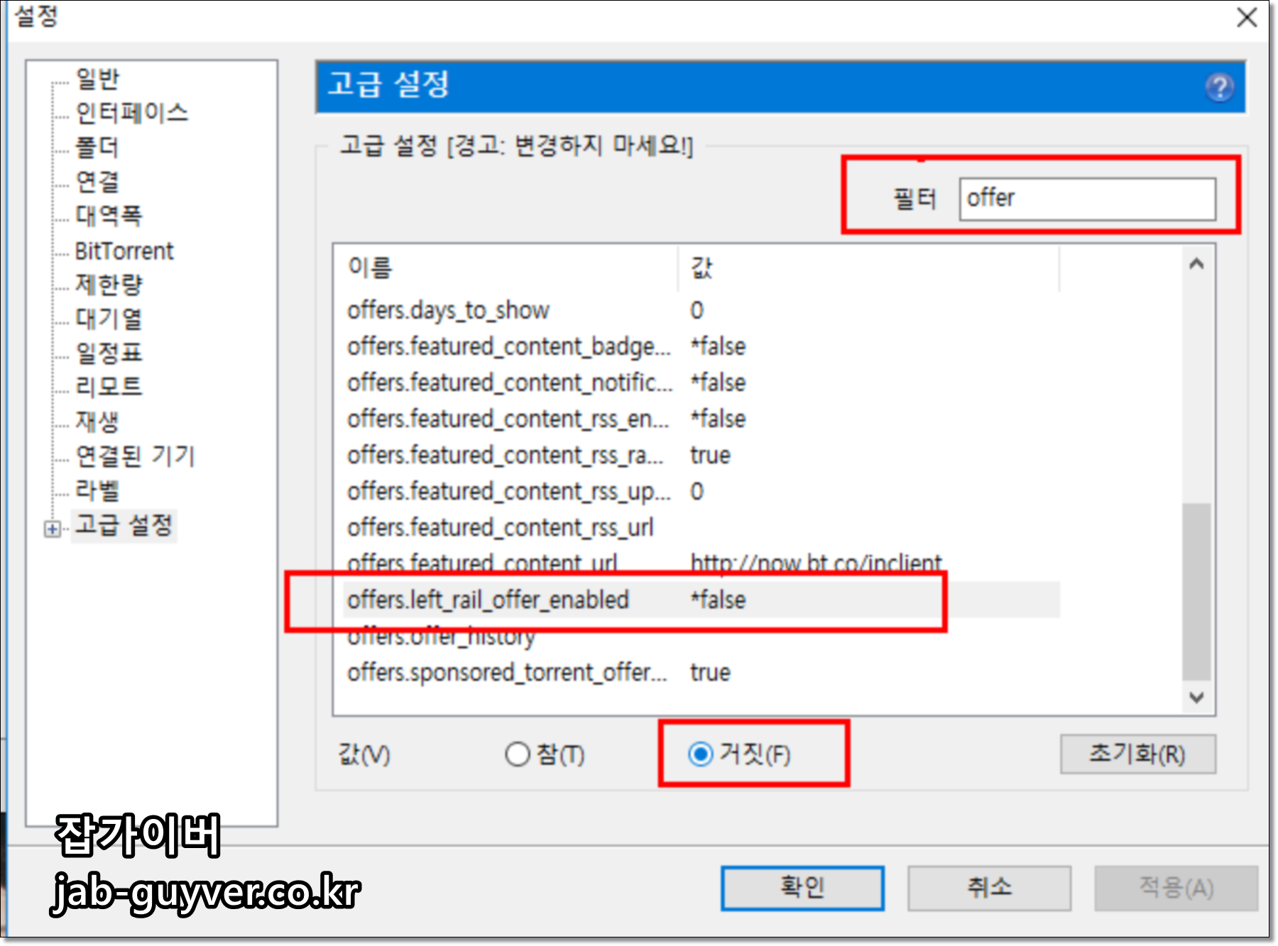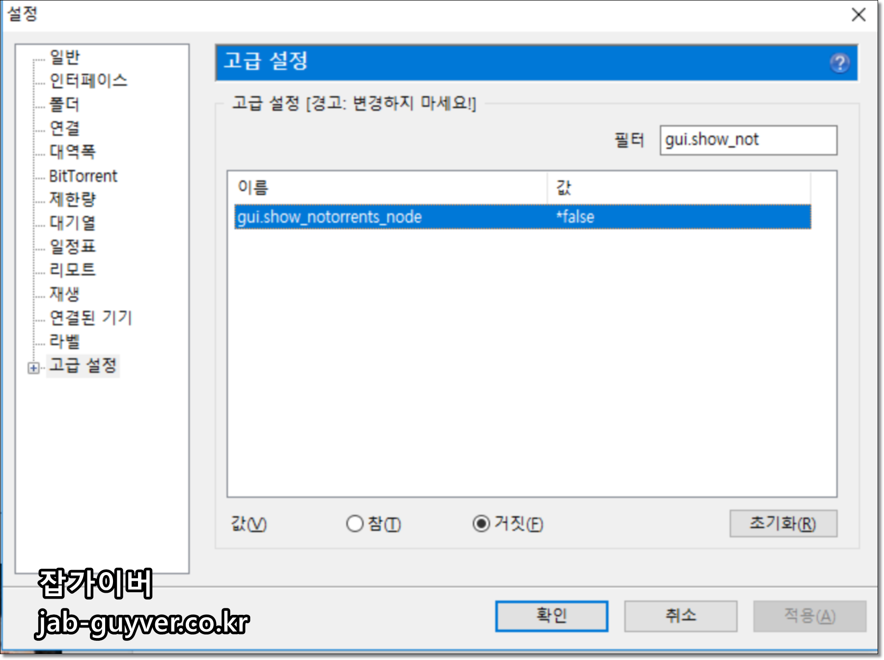 - gui.show_notorrents_node (상단 Pro 버전 광고)를 거짓으로 설정하고 확인을 누르자.