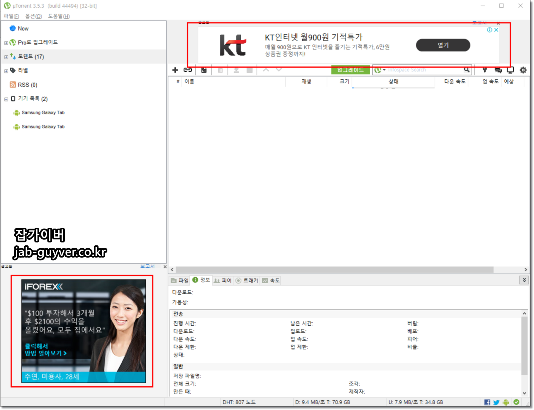 토렌트를 실행하면 상단과 좌측 등에 광고가 표시되며 이를 안 보이게 설정하는 방법을 알아봅니다.