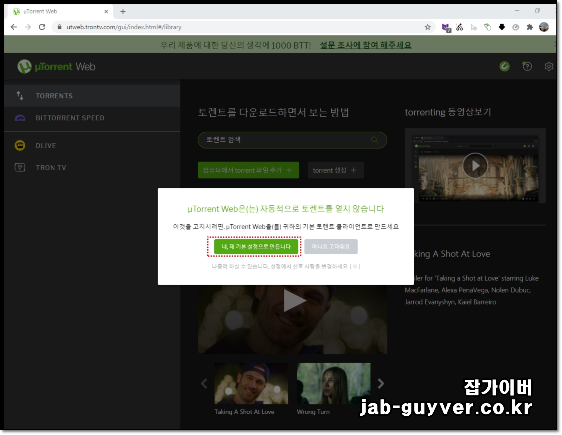 토렌트 웹브라우저 버전이 설치 완료되었습니다.