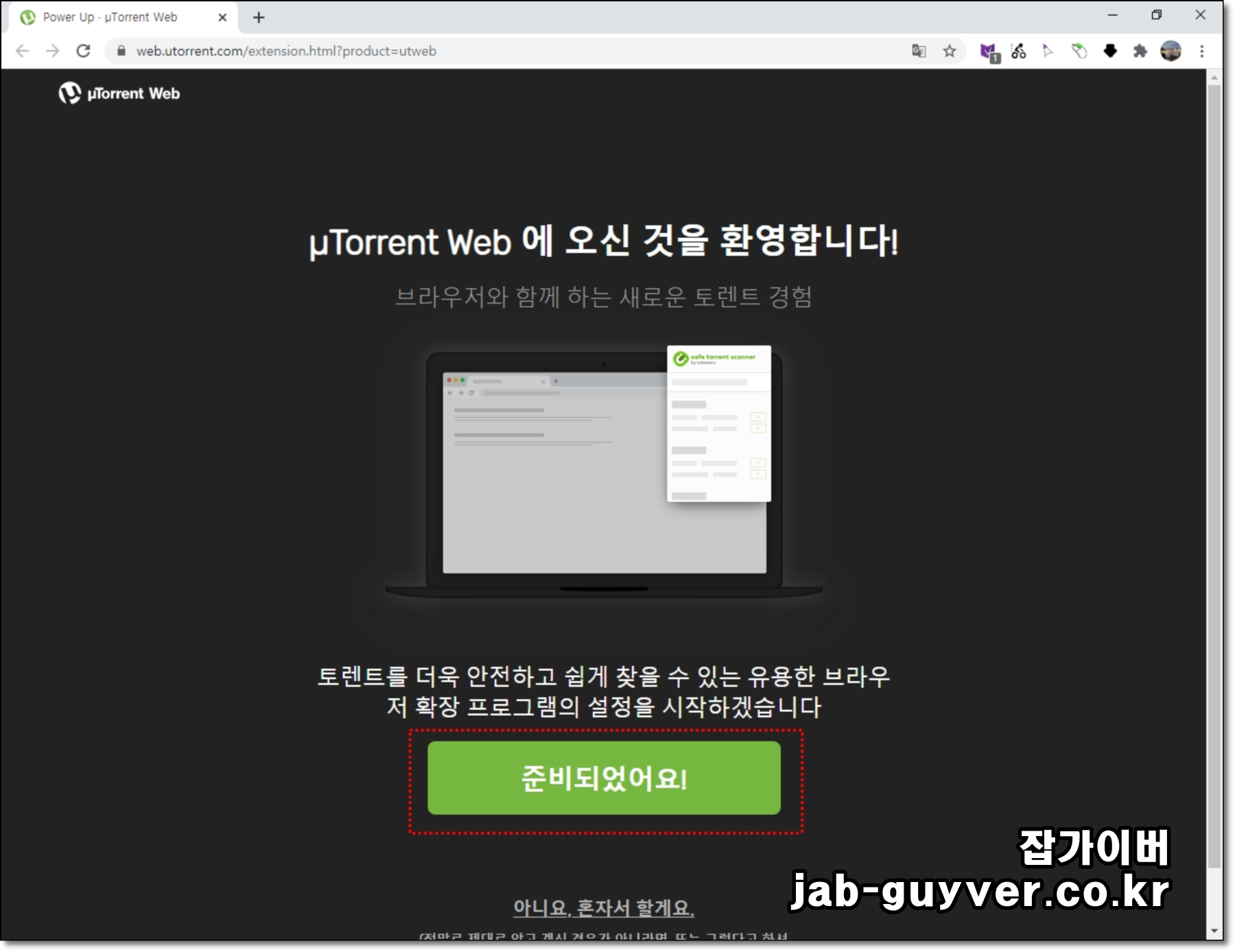 토렌트 웹브라우저 버전이 설치 완료되었습니다.